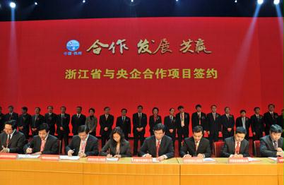 12月26日,國務院國資委與浙江省政府在杭州簽署《浙江省人民政府與國務院國有資產監督管理委員會合作備忘錄》,并共同舉辦浙江與中央企業合作洽談會,商定在“十二五”期間,共同推進中央企業與浙江進行深入和廣泛的戰略合作,充分發揮浙江區位優勢,促進多種所有制企業共同發展。國務院國資委主任、黨委書記王勇與浙江省委副書記、代省長夏寶龍代表雙方簽署合作備忘錄。浙江省委書記趙洪祝出席儀式并講話。國務院國資委副主任黃丹華、金陽,副秘書長郭建新出席簽字儀式。