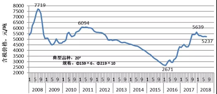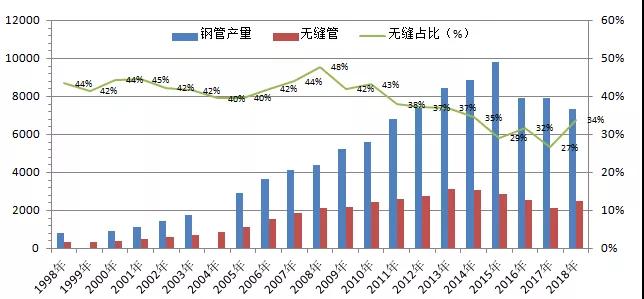 摘要:目前我國鋼管行業仍存在產能過剩、產業集中度低,特別是大型國企債務負擔重、成本高、競爭力不強,且面臨貿易摩擦加劇等問題;本文通過簡述我國鋼管產業的發展概況,包括產量、表觀消費量、進出口情況及無縫鋼管價格走勢;分析目前我國鋼管行業發展存在的主要問題以及無縫鋼管產業面臨的形勢,并提出我國鋼管企業學習國外大型鋼管企業的發展經驗,持續推進產業整合的專業建議。 關鍵詞:鋼管;發展概況;問題;困境;建議 新中國誕生70年的歷程見證著我們偉大祖國的奮斗足跡,也見證著我國鋼鐵行業的飛速發展。這70年間,我國鋼管行業發生了翻天覆地的巨大變化。我國鋼管行業,尤其是經過近二十年的高速發展,在產品結構、質量水平、技術裝備等方面不斷得到優化提升,已成為名副其實的世界鋼管制造大國,目前正在向世界鋼管工業強國邁進[1-2]。 1 我國鋼管產業發展概況 我國鋼管的產能已占世界首位,大型無縫鋼管、大型焊接鋼管和不銹鋼管企業在產能規模上已經進入國際先進行列。寶山鋼鐵股份有限公司(簡稱寶鋼股份)、天津鋼管集團股份有限公司(簡稱天津鋼管)、衡陽華菱鋼管有限公司(簡稱華菱衡鋼)、內蒙古包鋼鋼聯股份有限公司(簡稱包鋼)等無縫鋼管企業的產能進入世界前10位;寶雞石油鋼管有限責任公司(簡稱寶雞鋼管)、渤海石油裝備制造有限公司(簡稱渤海裝備)、天津友發鋼管集團股份有限公司(簡稱天津友發)等多家焊管企業的產能進入世界前5位;浙江久立特材科技股份有限公司(簡稱久立特材)的產能躋身于世界不銹鋼管材制造企業的前5位。我國大中型鋼管企業的裝備水平已經達到國際先進水平,無縫鋼管、焊接鋼管機組的種類、規格齊全,裝備新工藝先進。 我國專用鋼管產品自給率達到99%以上。20世紀90年代中期,我國生產油井管的數量、品種和質量都還遠遠滿足不了石油工業發展的需要。1949—1994年,45年間我國共消耗各種油井管1270萬t,其中進口1150萬t,國產120萬t。1980年我國開始抓油井管的國產化,20世紀90年代,國家抓緊電站鋼材國產化工作,經過近30年的發展,油井管國產化率從5%提高到目前的99%以上,我國也成為世界油井管生產基地。 1.1 生產情況 我國無縫鋼管產量2014年達到歷史最高水平后,受經濟增速放緩、下游產業需求低落以及國際原油價格下滑等因素影響,2015年產量回落至2900萬t左右,2018年產量繼續下滑至2500萬t左右。同時,隨著焊接鋼管生產技術的不斷改進,焊接鋼管產品質量得到較大提升,取代了部分無縫鋼管產品,使得無縫鋼管產量在鋼管總產量中的占比呈現下降趨勢。我國無縫鋼管產量占鋼管總產量的比例由21世紀初的最高48%下降到目前的30%左右。1998—2018年我國無縫鋼管產量及其在鋼管中的占比情況如圖1所示。 2008—2017年我國無縫鋼管產量在世界無縫鋼管總產量中的占比情況如圖2所示。2006年我國無縫鋼管產量占世界總產量接近50%,2009—2017年達到65%-75%(2012年最高為74.6%)。 圖1 1998-2018年我國無縫鋼管產量及其在鋼管中的占比情況 圖2 2008-2017年我國無縫鋼管產量在世界無縫鋼管總產量中的占比情況 1.2 表觀消費情況 2008—2018年我國無縫鋼管表觀消費量情況如圖3所示。2008—2013年我國無縫鋼管表觀消費量一直維持較快增速。2013年表觀消費量達到峰值2641.8萬t后,隨著國內經濟增速趨緩,無縫鋼管消費量開始下降,尤其油井管、長輸管線管、煤礦用支柱管等需求都有較大幅度的下降。2017年我國無縫鋼管消費量下降至1715.4萬t。2018年消費量恢復增長,表觀消費量2082.2萬t,同比增長約21.4%,結束了連續4年的下降趨勢。2018年無縫鋼管市場需求回升,主要是受下游產業需求企穩回升所致,尤其是石油價格的回升,拉動了油氣開發投資,進而拉動油井管市場需求增長。 按照目前的消費增長趨勢以及考慮消費已進入“峰值弧頂區”,預計2019—2025年我國無縫鋼管表觀消費量不會超過2400萬t/年。 圖3 2008-2018年我國無縫鋼管表觀消費量情況 1.3 進出口情況 2000—2018年我國無縫鋼管進出口情況如圖4所示。2018年,我國出口無縫鋼管422.5萬t,同比增長3.1%;主要出口品種是管線管(181.7萬t,同比下降8.1%,占無縫鋼管出口總量的43%),油井管(135.2萬t,同比增長19%,占無縫鋼管出口總量的32%),鍋爐管(16.9 萬t,同比增長11.9%,占無縫鋼管出口量的4%)。同年,我國進口無縫鋼管25.8萬t,同比增長44.1%;主要進口品種是鍋爐管(7.2萬t,同比下降18.8%,占無縫鋼管進口總量的28%),油井管(6.7萬t,同比增長41.5%,占無縫鋼管進口總量的26%),管線管(0.77萬t,同比增長了10%,占無縫鋼管進口總量的3%)。 圖4 2000-2018年我國無縫鋼管進出口情況 1.4 無縫鋼管價格走勢 2008年以來國內無縫鋼管(20鋼Φ159mm×6mm和Φ219mm×10mm規格)價格走勢如圖5所示。國內無縫鋼管市場價格在2008年中期快速沖高后很快回落;2011年一季度之后約5年時間,無縫鋼管價格一路下跌,2016年一季度達到最低點。其中,2015—2016年是鋼管行業最困難的兩年,除了久立特材、江蘇常寶鋼管股份有限公司等規模不大但品種特色明顯的極少數企業外,全行業處于虧損狀態。隨著供給側結構調整政策逐步實施,特別是鋼鐵產業大力實施去產能、取締“地條鋼”等舉措,2016年二季度以來,我國鋼管價格大幅上漲,2017年末創下了2008年以來價格第三高點(比第一、二高點分別低約27.0%和7.5%)。 圖5 2008年以來國內無縫鋼管價格走