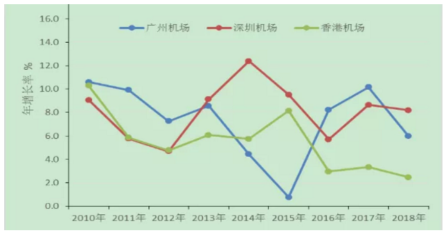 2019年2月18日,中共中央、國務院印發了《粵港澳大灣區發展規劃綱要》,指出粵港澳大灣區經濟實力、區域競爭力顯著增強,已具備建成國際一流灣區和世界級城市群的基礎條件,并提出建設世界級機場群。粵港澳大灣區規劃對城市群和機場群建設提出了新的要求,也將對區域航空業發展產生深刻影響。本文通過分析粵港澳大灣區機場群及航空運輸發展情況,并參考國內外機場群及區域經濟發展情況,提出了大灣區機場群建設發展的相關建議。 一、粵港澳大灣區機場群發展情況 粵港澳大灣區包括2個特別行政區和珠三角地區9個城市:香港、澳門特別行政區,廣東省廣州市、深圳市、珠海市、佛山市、惠州市、東莞市、中山市、江門市和肇慶市,總面積5.6萬平方公里,總人口約7000萬人,是我國開放程度最高、經濟活力最強的區域之一,在國家發展大局中具有重要戰略地位。 粵港澳大灣區內現有7個民用運輸機場,分別為:香港國際機場、澳門國際機場、廣州白云機場、深圳寶安機場、珠海金灣機場、佛山沙堤機場、惠州平潭機場。2018年粵港澳大灣區7個運輸機場實現旅客吞吐量2.15億人次、貨郵吞吐量832萬噸,分別占全國總量的16%和38%。大灣區機場群中香港、廣州和深圳3個大型國際樞紐機場占據主導地位,2018年3大機場的客運和貨運總量分別占區域的90%和99%。其中,香港機場實現旅客吞吐量7470萬人次、貨郵吞吐量512萬噸,分別占區域總量的35%和61%;廣州機場實現旅客吞吐量6972萬人次、貨郵吞吐量189萬噸,分別占區域總量的32%和23%;深圳機場實現旅客吞吐量4935萬人次、貨郵吞吐量122萬噸,分別占區域總量的23%和15%。此外,珠海機場近年來在區域機場體系中的地位逐步提升,2018年旅客吞吐量突破1000萬人次,占區域總量的比例從2009年的1%上升至5%。大灣區各機場航空業務量及區域占比情況如表1和圖1所示。 表1 2018年粵港澳大灣區各機場航空業務量 注:數據引自中國民用航空局2018年民航機場生產統計公報 圖1 2018年粵港澳大灣區各機場客運量及區域占比 近年來,粵港澳大灣區機場群基礎設施保障能力不斷提升,航線網絡進一步拓展,航空運輸保持了持續較快發展態勢。近十年來,大灣區內主要機場尤其是香港、廣州和深圳機場保持了長期穩定增長,旅客吞吐量年均增速分別為5.5%、7.3%和8.1%,貨郵吞吐量年均增速分別為4.8%、7.9%和8.0%。香港機場客貨運量居大灣區首位,自2010年以來貨運量持續保持全球第一,是全球最繁忙的國際航空貨運機場。 圖2 2010~2018年粵港澳大灣區三大機場旅客吞吐量增長率 二、粵港澳大灣區規劃對航空運輸的影響分析 機場群的建設發展需要城市群在經濟總量、人口規模、產業發展和地面交通等方面提供全面支撐,得益于粵港澳大灣區良好的經濟基礎,以及“一帶一路”合作倡議、粵港澳大灣區發展戰略的全面實施,大灣區經濟社會仍將保持較好的發展勢頭。粵港澳大灣區規劃對航空運輸的影響主要體現在以下幾個方面: (一)經濟仍將較快增長,航空市場仍有較高增長潛力。粵港澳大灣區地處我國沿海開放前沿,是我國經濟發展基礎最好,高端生產要素最密集,國際化程度最高,國內和國際市場需求最大的地區。2018年粵港澳大灣區經濟總量約1.64萬億美元,以占全國5%的人口和0.6%的國土面積,創造了全國12%經濟總量,人口集聚的經濟效益十分顯著。近年來,大灣區產業結構轉型升級,促使先進制造業和現代服務業發展不斷強化,尤其是旅游業、金融業、會展業和商務服務等高端服務業實現了快速增長,將成為吸引國內外高端客流的重要集聚區,區域航空市場需求仍將持續快速增長,同時對航空運輸服務質量和產品多樣化的要求也逐步提高。 (二)人口規模和城鎮化率相對穩定,為航空市場提供基礎保障。2018年粵港澳大灣區總人口7114萬人,人口密度達1268人/平方公里,超過紐約灣區(1161人/平方公里)和東京灣區(1192人/平方公里),同時考慮到近年來粵港澳大灣區流動人口增速已開始下降,根據區域經濟和人口布局及其演化趨勢分析,未來一段時期內粵港澳大灣區總人口將逐漸進入相對穩定期,預測未來總人口將達到8000萬人左右。從城鎮化率方面看,2018年大灣區常住人口城鎮化率達到87.5%,已進入相對穩定階段。較高的人口規模和城鎮化率,為大灣區航空需求市場提供基礎保障。 (三)區域一體化程度將持續提高,促進航空業協調發展。《粵港澳大灣區發展規劃綱要》提出,要發揮香港-深圳、廣州-佛山、澳門-珠海強強聯合的引領帶動作用,深化港深、澳珠合作,加快廣佛同城化建設。從當前區域發展格局來看,廣佛肇、深莞惠和珠中江三大都市區中,廣佛肇、深莞惠都市區發育相對成熟,隨著粵港澳大灣區建設的持續推進,珠海有望與澳門實現一體化發展,推動珠中江都市區快速發展。香港、澳門、廣州和深圳四大中心城市將作為區域發展的核心引擎,促進產業優勢互補和分工協作,區域現代產業協同水平和基礎設施互聯互通水平將持續提升,為航空業協調有序發展創造條件。 (四)對外聯系輻射不斷加強,有利于擴大航空市場空間。從全球格局來看,粵港澳大灣區不僅是東亞經濟最發達的區域之一,也是“一帶一路”建設的重要支撐,將不斷深化與東南亞、南亞等海上絲綢之路沿線國家和地區基礎設施互聯互通、經貿合作及人文交流。粵港澳大灣區也將輻射帶動泛