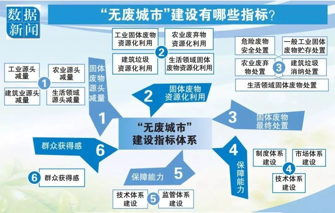 “無廢城市”是貫徹習近平生態文明思想,立足于創新、協調、綠色、開放、共享的五大發展理念,致力于打造綠色生產生活方式,實現安全處置固體廢棄物,降低其對生態環境的影響,并進行源頭減量和資源化利用的一種城市發展方式。2018年國務院辦公廳印發了《“無廢城市”建設試點工作方案》(國辦發〔2018〕128號),提出“無廢城市”建設理念,“探索建立‘無廢城市’建設綜合管理制度和技術體系,大宗工業固體廢物貯存處置總量增長趨零,主要農業廢棄物全量利用,生活垃圾減量化,資源化水平全面提升,危險廢棄物全面安全管控……,培育一批固體廢物資源化利用骨干企業。”要在全國范圍內選擇有條件、有基礎、規模適當的城市開展試點工作。