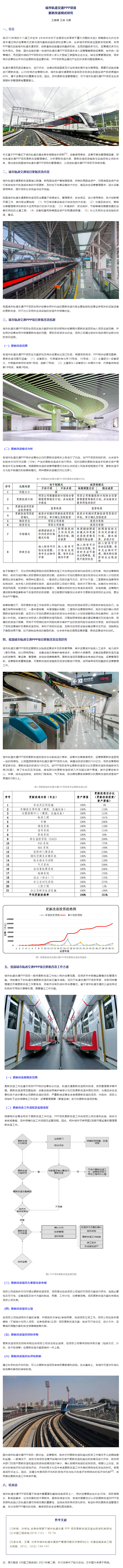 王鵬耀 王雄 馬勇 | 城市軌道交通PPP項目更新改造模式研究