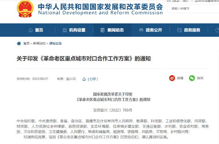 習(xí)近平總書記指出,要認(rèn)真做好東西部扶貧協(xié)作和對口支援、對口合作工作,助力對口地區(qū)跨越發(fā)展。《國務(wù)院關(guān)于新時代支持革命老區(qū)振興發(fā)展的意見》(國發(fā)〔2021〕3號)明確提出,“研究建立發(fā)達省市與革命老區(qū)重點城市對口合作機制”。《“十四五”特殊類型地區(qū)振興發(fā)展規(guī)劃》進一步指出,要“持續(xù)推動對口支援、對口幫扶、對口協(xié)作、對口合作等工作,強化智力扶持,加強重點領(lǐng)域合作,激發(fā)地區(qū)發(fā)展內(nèi)生動力”。近日,經(jīng)國務(wù)院同意,國家發(fā)展改革委印發(fā)了《革命老區(qū)重點城市對口合作工作方案》(以下簡稱《工作方案》)。這是深入貫徹落實《國務(wù)院關(guān)于新時代支持革命老區(qū)振興發(fā)展的意見》和《“十四五”特殊類型地區(qū)振興發(fā)展規(guī)劃》的具體行動,也是新發(fā)展階段促進區(qū)域協(xié)調(diào)發(fā)展、支持革命老區(qū)振興發(fā)展的創(chuàng)新舉措,將有利于結(jié)對城市優(yōu)勢互補、互學(xué)互鑒、互惠互利、共謀發(fā)展,有利于加強區(qū)域協(xié)作合作,共同穩(wěn)定經(jīng)濟增長。 一、《工作方案》是新發(fā)展階段支持革命老區(qū)振興發(fā)展的創(chuàng)新舉措 黨的十八大以來,中央部委、對口支援省市、中央企業(yè)、科研機構(gòu)、社會各界等齊心協(xié)力支持革命老區(qū)振興發(fā)展,先后出臺了百余個支援革命老區(qū)建設(shè)的政策文件,幫助革命老區(qū)人民脫貧奔小康,充分發(fā)揮社會主義制度優(yōu)勢和延續(xù)我黨集中力量辦大事的優(yōu)良傳統(tǒng),推動革命老區(qū)與全國同步全面建成小康社會,邁上了全面建設(shè)社會主義現(xiàn)代化的新征程。在此背景下,編制和實施《工作方案》,有利于貫徹新發(fā)展理念,發(fā)揮中國特色社會主義制度優(yōu)勢推動共同富裕,構(gòu)建發(fā)達地區(qū)和特殊類型地區(qū)協(xié)同發(fā)展的新局面;有利于發(fā)揮偉大建黨精神的引領(lǐng)作用,激勵革命老區(qū)重點城市和發(fā)達地區(qū)部分城市共同開啟社會主義現(xiàn)代化建設(shè)新征程;有利于統(tǒng)籌區(qū)域協(xié)調(diào)發(fā)展,鞏固革命老區(qū)脫貧攻堅成果銜接推進鄉(xiāng)村振興和新型城鎮(zhèn)化,促進革命老區(qū)重點城市和發(fā)達地區(qū)共謀經(jīng)濟社會發(fā)展,同步構(gòu)建高質(zhì)量發(fā)展新格局。 《工作方案》根據(jù)國務(wù)院批復(fù)的《“十四五”特殊類型地區(qū)振興發(fā)展規(guī)劃》,明確了重點推動贛州、吉安、龍巖、三明、梅州、延安、慶陽、六安、信陽、黃岡、百色、巴中、郴州、張家界、恩施、遵義、長治、汕尾、麗水等20個城市開展對口合作,基于現(xiàn)有東西部協(xié)作、對口合作關(guān)系等,選擇位于粵港澳大灣區(qū)、長三角、京津冀的發(fā)達城市與革命老區(qū)重點城市對口合作。《工作方案》同時明確,支持其他革命老區(qū)市縣主動對接?xùn)|部、中部地區(qū)城市,比照本方案建立對口合作關(guān)系。鼓勵相關(guān)省(區(qū)、市)結(jié)合實際建立省域內(nèi)結(jié)對幫扶革命老區(qū)市縣工作機制。 二、立足革命老區(qū)振興發(fā)展定位謀劃五大對口合作重點任務(wù) 《工作方案》以習(xí)近平新時代中國特色社會主義思想為指導(dǎo),緊密圍繞《國務(wù)院關(guān)于新時代支持革命老區(qū)振興發(fā)展的意見》以及《“十四五”特殊類型地區(qū)振興發(fā)展規(guī)劃》中關(guān)于革命老區(qū)振興發(fā)展的重點任務(wù),準(zhǔn)確把握革命老區(qū)振興發(fā)展共性,明確了優(yōu)勢互補、互惠互利、共謀發(fā)展的對口合作工作思路,聚焦促進區(qū)域協(xié)調(diào)發(fā)展、推動區(qū)域合作協(xié)作提出了5大重點任務(wù),進一步豐富了新發(fā)展階段革命老區(qū)振興發(fā)展的實踐路徑。 在促進紅色文化傳承方面,革命老區(qū)是革命傳統(tǒng)的重要承載地,黨史事件多、紅色資源多、革命先輩多,蘊含著中華民族偉大復(fù)興的強大精神力量,鑄就了井岡山精神、蘇區(qū)精神、老區(qū)精神等偉大精神,開展黨史學(xué)習(xí)教育具有獨特優(yōu)勢。《工作方案》明確,結(jié)合對口合作,積極支持赴革命老區(qū)重點城市開展學(xué)習(xí)交流,大力弘揚偉大建黨精神,傳承弘揚井岡山精神、蘇區(qū)精神、長征精神、遵義會議精神等偉大精神,鼓勵共同開展革命文物保護利用,共同搭建紅色文化旅游融合發(fā)展平臺。 在銜接推進鄉(xiāng)村振興和新型城鎮(zhèn)化方面,12個革命老區(qū)總?cè)丝诩s2.6億,約占全國的19%。《工作方案》明確,結(jié)合對口合作,做好易地扶貧搬遷后續(xù)扶持,加大就業(yè)和產(chǎn)業(yè)扶持力度,推進鄉(xiāng)村振興。持續(xù)加強消費幫扶,推進革命老區(qū)特色農(nóng)產(chǎn)品產(chǎn)銷對接。支持革命老區(qū)重點城市推進以人為核心的新型城鎮(zhèn)化,因地制宜建設(shè)區(qū)域性節(jié)點城市、重要交通樞紐、現(xiàn)代產(chǎn)業(yè)基地、商貿(mào)物流中心等。 在完善基礎(chǔ)設(shè)施和基本公共服務(wù)設(shè)施方面,革命老區(qū)大多位于京津冀、長三角、粵港澳大灣區(qū)、成渝都市圈、長江中游城市群的交通