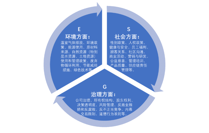 ESG是英文Environmental(環境)、Social(社會)和Governance(治理)的縮寫,是一種關注企業環境、社會、治理績效而非財務績效的投資理念和企業評價標準。基于ESG評價,投資者可以評估其投資行為和企業(投資對象)在促進經濟可持續發展、履行社會責任等方面的貢獻。