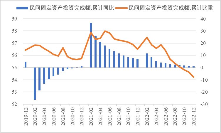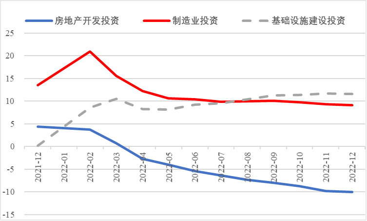 2022年,面對(duì)復(fù)雜嚴(yán)峻的國際環(huán)境和國內(nèi)疫情挑戰(zhàn),我國投資整體表現(xiàn)較強(qiáng)韌性,對(duì)穩(wěn)定經(jīng)濟(jì)基本盤發(fā)揮了壓艙石作用。基礎(chǔ)設(shè)施和部分制造業(yè)成為穩(wěn)投資的重點(diǎn)領(lǐng)域,中西部地區(qū)投資增長動(dòng)能強(qiáng)勁。同時(shí),制造業(yè)承壓加劇、房地產(chǎn)投資下行、地方債高壓、社融需求走弱等突出問題制約投資持續(xù)穩(wěn)定增長,穩(wěn)投資壓力仍然較大。做好2023年投資促進(jìn)工作,關(guān)鍵是把擴(kuò)大有效投資同優(yōu)化供給結(jié)構(gòu)有機(jī)結(jié)合起來,持續(xù)擴(kuò)大高技術(shù)產(chǎn)業(yè)投資,多舉措穩(wěn)定房地產(chǎn)投資,更好發(fā)揮政府投資的引導(dǎo)作用,充分釋放社會(huì)投資需求潛能。 一、固定資產(chǎn)投資整體運(yùn)行情況 (一)整體投資韌性超出預(yù)期,民間投資呈下行趨勢(shì) 2022年1—12月,我國固定資產(chǎn)投資(不含農(nóng)戶,下同)572138億元,同比增長5.1%。一季度投資增速達(dá)到9.3%的年內(nèi)高點(diǎn),上半年、前三季度分別降至6.1%、5.9%,年初投資增速較高的重要原因是2022年專項(xiàng)債部分限額提前下達(dá)等系列政策發(fā)揮效果,之后受國外地緣政治沖突、國內(nèi)疫情多點(diǎn)散發(fā)等因素影響,投資增速有所下降,但降幅逐季收窄。一季度、上半年、前三季度、全年固定資產(chǎn)投資增速分別較同期國內(nèi)生產(chǎn)總值增速高了4.5個(gè)、3.6個(gè)、2.9個(gè)和2.1個(gè)百分點(diǎn),投資成為當(dāng)前穩(wěn)定宏觀經(jīng)濟(jì)大盤的關(guān)鍵力量。 圖1 全國固定資產(chǎn)投資增速 (累計(jì)同比,%) 數(shù)據(jù)來源:國家統(tǒng)計(jì)局 1—12月,我國固定資產(chǎn)投資三年平均增速為4.3%,低于2019年同期1.1個(gè)百分點(diǎn),全面恢復(fù)到疫情前水平仍需一定時(shí)間。尤其是民間投資受疫情沖擊較為嚴(yán)重,復(fù)蘇難度較大。一季度、上半年、前三季度、全年民間投資分別同比增長8.4%、3.5%、2%、0.9%,低于整體投資增速0.9個(gè)、2.6個(gè)、3.9個(gè)、4.2個(gè)百分點(diǎn),與整體投資增速的差距逐季拉大。從占比看,截至12月底民間投資累計(jì)占固定資產(chǎn)投資的比重已降至54.2%,低于2019年同期2.2個(gè)百分點(diǎn)。 圖2 民間投資增速及占比(%) 數(shù)據(jù)來源:國家統(tǒng)計(jì)局,Wind數(shù)據(jù)庫 (二)基礎(chǔ)設(shè)施、制造業(yè)投資支撐作用明顯,房地產(chǎn)市場(chǎng)持續(xù)低迷 制造業(yè)投資在外需帶動(dòng)和政策支撐下展現(xiàn)較強(qiáng)韌性,2022年1—12月制造業(yè)投資同比增長9.1%,比整體投資高4個(gè)百分點(diǎn)。在內(nèi)需受疫情影響明顯收縮的情況下,制造業(yè)投資超預(yù)期增長很大程度上得益于外需對(duì)出口的拉動(dòng)。我國全年貨物出口額累計(jì)同比增長10.5%,裝備制造、消費(fèi)品制造等領(lǐng)域海外訂單持續(xù)旺盛,機(jī)電產(chǎn)品占進(jìn)出口總額的49.1%,汽車出口大幅增長82.2%。技改投資繼續(xù)發(fā)揮對(duì)制造業(yè)投資的拉動(dòng)作用。1—11月,制造業(yè)企業(yè)技改投資同比增長9.1%,占全部制造業(yè)投資的比重達(dá)40.9%。 基礎(chǔ)設(shè)施投資在增加政策性開發(fā)性金融工具額度、用好專項(xiàng)債等融資支持政策以及各地區(qū)各部門積極貫徹落實(shí)穩(wěn)增長系列政策推動(dòng)下,連續(xù)8個(gè)月回升,1—12月同比增長9.4%,高于全部投資增速4.3個(gè)百分點(diǎn)。其中,水利管理業(yè)投資和公共設(shè)施管理業(yè)投資分別大幅增長13.6%、10.1%。 表1 1-12月我國各行業(yè)固定資產(chǎn)投資情況 2022年受需求走弱影響,房地產(chǎn)開發(fā)投資增速持續(xù)放緩,一季度僅同比增長0.7%,二季度開始滑落至負(fù)增長區(qū)間。1—12月我國房地產(chǎn)開發(fā)投資同比下降10%,降幅較前三季度、上半年分別擴(kuò)大2個(gè)、4.6個(gè)百分點(diǎn),跌幅持續(xù)加深,拖累固定資產(chǎn)投資整體增長。房企土地購置費(fèi)、施工面積、新開工面積等指標(biāo)均出現(xiàn)持續(xù)大幅下降。1—12月,房地產(chǎn)開發(fā)景氣指數(shù)均位于100以下,且自2月以來持續(xù)走低。 圖3 三大領(lǐng)域固定資產(chǎn)投資增速 (累計(jì)同比,%) 數(shù)據(jù)來源:國家統(tǒng)計(jì)局,Wind數(shù)據(jù)庫 高技術(shù)產(chǎn)業(yè)投資引領(lǐng)作用持續(xù)增強(qiáng)。在投資整體下行壓力加大的情況下,高技術(shù)產(chǎn)業(yè)投資逆勢(shì)而上,穩(wěn)投資引領(lǐng)作用持續(xù)顯現(xiàn)。2022年高技術(shù)產(chǎn)業(yè)投資同比增長18.9%,比全部投資增速高13.8個(gè)百分點(diǎn)。分類別看,高技術(shù)制造業(yè)投資同比增長22.2%,比制造業(yè)整體投資高了13.1個(gè)百分點(diǎn),其中電子及通信設(shè)備制造業(yè)投資增長27.2%,醫(yī)療儀器設(shè)備及儀器儀表制造業(yè)投資增長27.6%,電子、醫(yī)藥制造業(yè)投資大幅增加;高技術(shù)服務(wù)業(yè)投資同比增長12.1%,其中科技成果轉(zhuǎn)化服務(wù)業(yè)投資增長26.4%,研發(fā)設(shè)計(jì)服務(wù)業(yè)投資增長19.8%,企業(yè)研發(fā)投入顯著加大。 圖4 高技術(shù)產(chǎn)業(yè)投資增速對(duì)比整體投資增速 (累計(jì)同比,%) 數(shù)據(jù)來源:國家統(