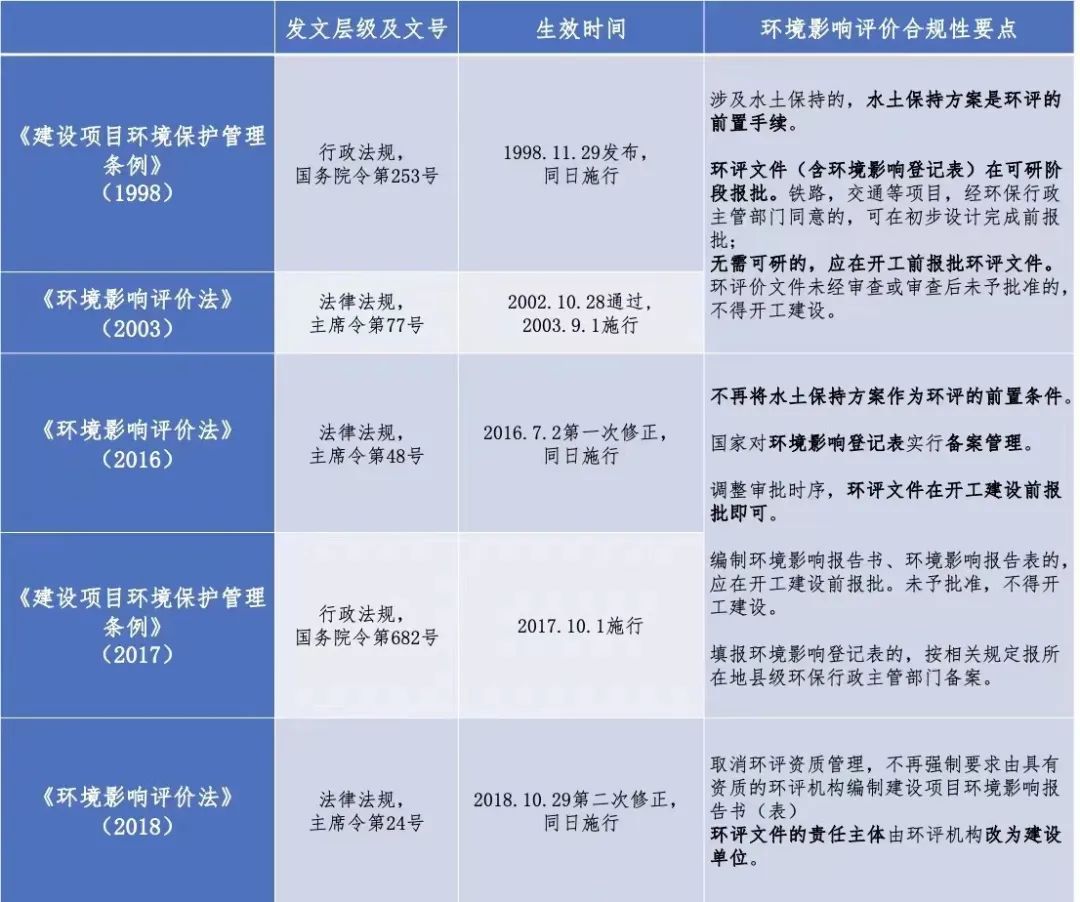 編者按 新中國成立以來,我國基礎設施投資建設取得了舉世矚目的成就,是國家經濟社會發展的重要支撐,為人民生活水平的提高做出了巨大貢獻。改革開放以來,市場開始發揮配置資源的基礎性作用,為我國基礎設施的發展煥發了新的活力。據統計,我國基礎設施資產總規模在1990年排在全世界約第15位,2000年上升到第7位,2010年躍升為第3位,至2018年已居世界首位。 黨的二十大報告在回顧過去五年的工作和新時代十年的偉大變革中,充分肯定了基礎設施在經濟社會中發揮的重要作用,報告指出,我國“建成世界最大的高速鐵路網、高速公路網,機場港口、水利、能源、信息等基礎設施建設取得重大成就”。我國基礎設施多年來大規模的投資建設和存量資產的高速積累,是黨中央、國務院在建立社會主義市場經濟體制背景下,關于投融資體制改革部署的重要成果。 項目前期工作手續的合規性要求,是基礎設施能夠發揮其應有價值的重要前提,也是投融資體制改革關注的重點內容之一。伴隨著政府職能轉變、深化“放管服”改革和擴大有效投資等重大決策的關鍵部署,我國工程建設項目審批制度不斷優化和改革,基礎設施項目投資前期決策管理經歷了復雜的演變進程,其合規性標準也在與時俱進、不斷完善。當前我國已進入基礎設施存量時代,存量資產項目前期工作手續的合規性是重要的盤活條件之一,部分合規性問題已成為新時代社會廣泛關注的焦點。本項專題研究立足投融資體制和項目審批制度變革的歷史背景,嘗試厘清基礎設施項目在立項、土地、規劃、環境、建設施工等方面主要前期工作的歷史變革脈絡,梳理不同管理事項之間的邏輯關聯,從這一視角提供基礎設施項目前期工作手續的合規性認識。本公眾號將研究報告的部分成果以系列文章的形式陸續刊發,研究報告第一部分為背景與立項篇,第二部分為土地與規劃篇,第三部分為建設施工篇,本文是研究報告的第四部分(環境篇),供業界同仁參考。 基礎設施項目前期工作手續合規性研究(Ⅳ) 環境篇 張雪飛 伍迪 摘要:綠水青山就是金山銀山,基礎設施項目的建設可能會對環境產生影響,因此需要格外重視項目在環境保護方面的有關前期工作,具有代表性的手續事項主要包括環境影響評價、排污許可、環保專項驗收等。建設項目環境影響評價,是對項目實施后可能造成的環境影響進行分析、預測和評估,提出預防或者減輕不良環境影響的對策和措施,進行跟蹤監測的方法與制度。排污許可,是環境保護主管部門依排污單位的申請和承諾,通過發放排污許可證法律文書形式,依法依規規范和限制排污單位排污行為并明確環境管理要求,依據排污許可證對排污單位實施監管執法的環境管理制度。如果說環境影響評價制度是建設項目的環境準入門檻,那么排污許可制度是企事業單位生產運營期排污的法律依據。本文聚焦基礎設施項目環境方面的手續,對手續主要內容和制度演進進行系統梳理,供業界參考。 關鍵詞:基礎設施;合規性;環境影響評價;排污許可;政策演進 當前我國基礎設施項目在環境方面前期工作主要包括環境影響評價和排污許可等相關手續,此外,在工程項目的竣工驗收階段,還包括環保方面的專項驗收等。 ——開展建設項目環境影響評價,自上世紀末《建設項目環境保護管理條例》開始施行以來就一直都是基礎設施項目在環境方面前期手續的核心工作。環境影響評價是對規劃和建設項目實施后可能造成的環境影響進行的分析、預測和評估,并提出預防或者減輕不良環境影響的對策和措施,進行跟蹤監測。實行建設項目環境影響評價制度,最主要目的是為了防止建設項目產生新的污染、造成生態環境的破壞。 ——排污許可制度,從2016年11月開始施行,形成了與環境影響評價制度的有機銜接。如果說環境影響評價制度是建設項目的環境準入門檻,那么排污許可制度是企事業單位生產運營期排污的法律依據。為實現從污染預防到污染治理和排放控制的全過程監管,新建項目必須在發生實際排污行為之前申領排污許可證,環境影響評價文件及批復中與污染物排放相關的主要內容應當納入排污許可證,其排污許可證執行情況應作為環境影響后評價的重要依據。 ——環保驗收是基礎設施項目竣工后,建設單位按照國務院環境保護行政主管部門規定的標準和程序,對配套建設的環境保護設施進行的專項驗收。 一、環境影響評價 (一)內涵與適用范圍 分類管理。根據建設項目對環境的影響程度,我國對建設項目的環境影響評價實行分類管理。建設單位應當按照不同標準組織編制不同形式的內容:可能造成重大環境影響的,應當編制環境影響報告書,對產生的環境影響進行全面評價;可能造成輕度環境影響的,應當編制環境影響報告表,對產生的環境影響進行分析或者專項評價;對環境影響很小、不需要進行環境影響評價的,應當填報環境影響登記表。建設項目的環境影響評價分類管理名錄,由國務院生態環境主管部門(原國務院環境保護行政主管部門)制訂并公布。最新修訂且現行有效的《建設項目環境保護分類管理名錄》由2020年11月30日生態環境部令第16號公布,自2021年1月1日起施行。 最新評價內容。環境影響評價主要以《中華人民共和國環境影響評價法》(以下簡稱《環境影響評價法》)和《建設項目環境