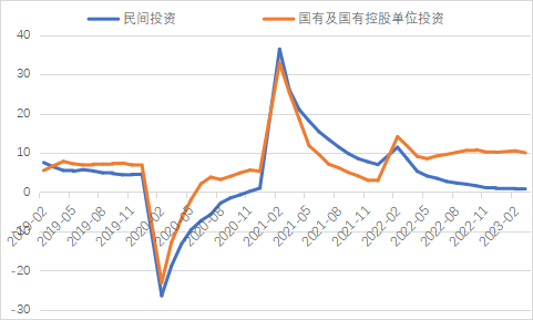 2023年一季度生產(chǎn)需求明顯改善,市場(chǎng)預(yù)期加快好轉(zhuǎn),經(jīng)濟(jì)企穩(wěn)勢(shì)頭開(kāi)始顯現(xiàn)。固定資產(chǎn)投資穩(wěn)定增長(zhǎng)為一季度經(jīng)濟(jì)平穩(wěn)運(yùn)行提供了重要支撐,各地都將穩(wěn)投資作為重要工作,有效應(yīng)對(duì)外部不確定性因素沖擊。隨著供需循環(huán)進(jìn)一步暢通,疊加前期政策效應(yīng)等多方面積極因素,擴(kuò)大有效投資仍有潛力和空間。下階段,應(yīng)聚焦重點(diǎn)產(chǎn)業(yè)、重要產(chǎn)業(yè)鏈、民生領(lǐng)域等精準(zhǔn)發(fā)力,多渠道籌措項(xiàng)目建設(shè)資金,更好發(fā)揮投資對(duì)于調(diào)結(jié)構(gòu)、促轉(zhuǎn)型的帶動(dòng)作用,為經(jīng)濟(jì)高質(zhì)量發(fā)展打下堅(jiān)實(shí)基礎(chǔ)。 一、固定資產(chǎn)投資整體運(yùn)行情況 1.整體投資保持平穩(wěn)增長(zhǎng)態(tài)勢(shì) 2023年1-3月,我國(guó)固定資產(chǎn)投資(不含農(nóng)戶,下同)10782億元,同比增長(zhǎng)5.1%,較國(guó)內(nèi)生產(chǎn)總值增速高了0.6個(gè)百分點(diǎn),與2022年全年增速持平,固定資產(chǎn)投資增速仍保持高位。從投資構(gòu)成看,一季度建安工程、設(shè)備工器具購(gòu)置、其他費(fèi)用分別增長(zhǎng)4.1%、4.2%、8.2%。建安工程、設(shè)備工器具購(gòu)置保持較快增長(zhǎng),人工、材料、施工機(jī)具使用以及設(shè)備購(gòu)置等費(fèi)用增速加快,反映了在穩(wěn)投資系列政策推動(dòng)下,新上項(xiàng)目較多、新上項(xiàng)目中設(shè)備購(gòu)置量增多、企業(yè)更新改造力度加大。 圖1 全國(guó)固定資產(chǎn)投資增速(%) 數(shù)據(jù)來(lái)源:國(guó)家統(tǒng)計(jì)局 2.民間投資意愿和能力仍待恢復(fù) 2023年1-3月,民間固定資產(chǎn)投資為58532億元,同比增長(zhǎng)0.6%,較1-2月低了0.2個(gè)百分點(diǎn),低于投資整體增速4.5個(gè)百分點(diǎn),仍處于低位運(yùn)行狀態(tài)。從季度波動(dòng)看,民間固定資產(chǎn)投資的增速已由2022年第一季度的8.4%持續(xù)下滑,下滑幅度較大。民間固定資產(chǎn)投資占比進(jìn)一步萎縮,跌至2011年以來(lái)的次低點(diǎn),僅為54.56%。 圖2 民間投資增速及占比(%) 數(shù)據(jù)來(lái)源:國(guó)家統(tǒng)計(jì)局,Wind數(shù)據(jù)庫(kù) 近年來(lái),受疫情反復(fù)、成本上升、內(nèi)需收縮等因素影響,民間投資動(dòng)力和能力普遍偏弱,民營(yíng)企業(yè)面臨較嚴(yán)重的需求收縮。2022年開(kāi)始,國(guó)有及國(guó)有控股單位投資增速超過(guò)民間投資增速,且差距逐漸拉大。2023年1-3月,國(guó)有及國(guó)有控股單位同比增長(zhǎng)10%,較民間投資增速高了9.4個(gè)百分點(diǎn)。1-2月,內(nèi)資企業(yè)中的國(guó)有企業(yè)、集體企業(yè)和股份合作企業(yè)固定資產(chǎn)投資分別同比增長(zhǎng)17.8%、20.5%和17.1%。 圖3 民間投資、國(guó)有及國(guó)有控股單位投資增速(%) 數(shù)據(jù)來(lái)源:國(guó)家統(tǒng)計(jì)局,Wind數(shù)據(jù)庫(kù) 3.基建投資加力提效,制造業(yè)投資結(jié)構(gòu)持續(xù)優(yōu)化 2023年1-3月,制造業(yè)投資保持較快增長(zhǎng),基建投資增速有所提升,房地產(chǎn)投資增速仍為負(fù)值,但降幅明顯收窄?;A(chǔ)設(shè)施投資在增加政策性開(kāi)發(fā)性金融工具額度、用好專項(xiàng)債等融資支持政策以及各地區(qū)各部門積極貫徹落實(shí)穩(wěn)增長(zhǎng)系列政策推動(dòng)下,效果逐步顯現(xiàn),一季度基礎(chǔ)設(shè)施投資同比增長(zhǎng)8.8%,高于全部投資5.7個(gè)百分點(diǎn),是大類投資中增長(zhǎng)最快的領(lǐng)域。基建投資呈現(xiàn)結(jié)構(gòu)性特征,資金投向更加聚焦。一季度水利管理業(yè)投資增長(zhǎng)10.3%,公共設(shè)施管理業(yè)投資增長(zhǎng)7.7%,道路運(yùn)輸業(yè)投資增長(zhǎng)8.5%,鐵路運(yùn)輸業(yè)投資增長(zhǎng)17.6%?;ǖ耐七M(jìn)速度與資金的到位情況呈強(qiáng)相關(guān)性,從政策支持領(lǐng)域看,資金重點(diǎn)流向了市政及產(chǎn)業(yè)園區(qū)基礎(chǔ)設(shè)施、社會(huì)事業(yè)、交通基礎(chǔ)設(shè)施、保障性安居工程、農(nóng)林水利、生態(tài)環(huán)保、倉(cāng)儲(chǔ)物流基礎(chǔ)設(shè)施等領(lǐng)域,聚焦于基礎(chǔ)設(shè)施“補(bǔ)短板”以及新基建“提質(zhì)量”,確保了資金精準(zhǔn)灌溉。 表1 1-3月我國(guó)各行業(yè)固定資產(chǎn)投資情況 2023年一季度,國(guó)內(nèi)需求逐步擴(kuò)大,經(jīng)營(yíng)主體預(yù)期好轉(zhuǎn),制造業(yè)投資同比增長(zhǎng)7%,比整體投資高1.9個(gè)百分點(diǎn)。其中,高技術(shù)制造業(yè)投資同比增長(zhǎng)15.2%,對(duì)制造業(yè)投資拉動(dòng)作用明顯,表明制造業(yè)轉(zhuǎn)型升級(jí)態(tài)勢(shì)持續(xù)。制造業(yè)改造升級(jí)潛力巨大,高技術(shù)制造業(yè)投資明顯快于全部投資。3月,制造業(yè)采購(gòu)經(jīng)理指數(shù)(PMI)為51.9%,比上月下降0.7個(gè)百分點(diǎn),連續(xù)三個(gè)月位于景氣區(qū)間。隨著國(guó)內(nèi)經(jīng)濟(jì)循環(huán)加快恢復(fù),制造業(yè)生產(chǎn)和市場(chǎng)需求穩(wěn)步回升,生產(chǎn)指數(shù)和新訂單指數(shù)分別為54.6%和53.6%,位于近期較高景氣水平,裝備制造業(yè)、高技術(shù)制造業(yè)PMI分別為53%、51.2%,制造業(yè)繼續(xù)保持?jǐn