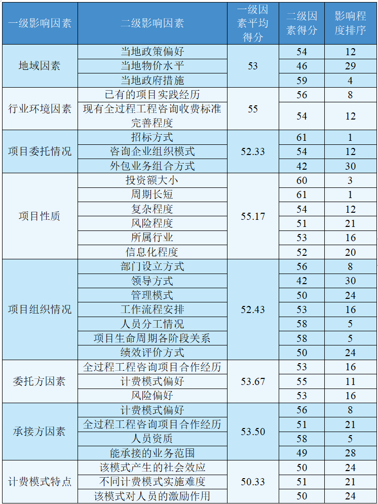 許相敏 顏俊 等 | 我國全過程工程咨詢服務酬金計取方式影響因素和模式選擇
