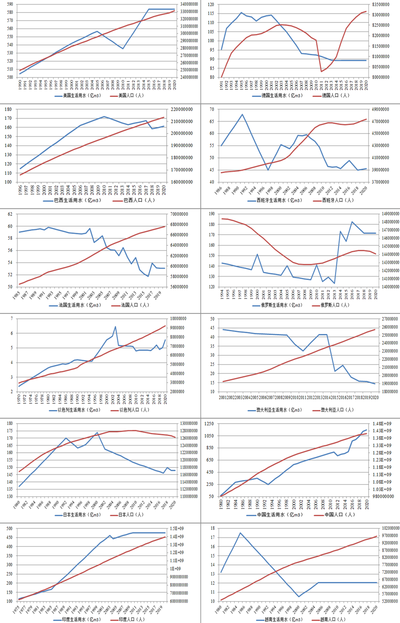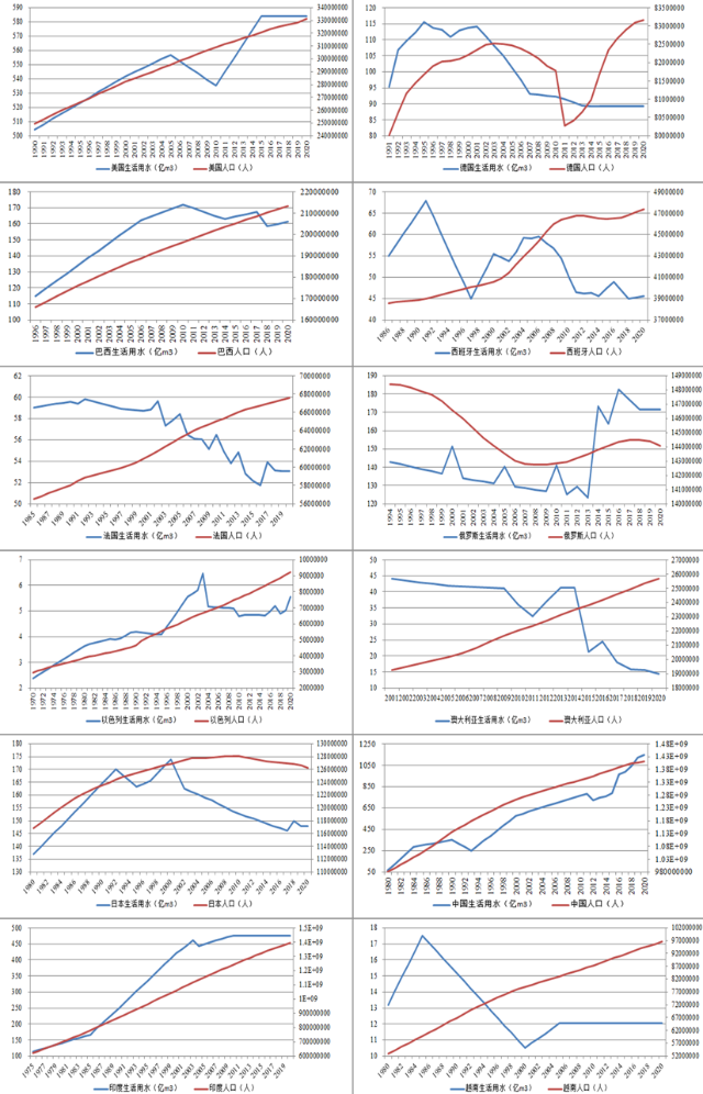 2021年5月14日,習近平總書記在河南省南陽市主持召開推進南水北調后續工程高質量發展座談會時強調,要堅持遵循規律,研判把握水資源長遠供求趨勢、區域分布和結構特征,科學確定工程規模和總體布局。這既是對南水北調后續工程規劃設計的要求,也是我們開展水利規劃和水利投資項目前期工作必須遵循的基本原則。需水預測是水資源規劃、水利工程建設的基礎。進入新發展階段,全國水資源需求趨勢發生深刻變化,迫切需要貫徹落實習近平總書記的治水新思路,梳理新情況,把準新形勢,遵循客觀規律,以系統觀念開展需水預測研究,為科學治水奠定扎實的基礎。 一、黨的十八大以來全國實際用水態勢已發生明顯變化 本世紀以來全國的用水態勢發生了很大的變化,由黨的十八大以前總體增長的態勢轉變為增速降低甚至負增長的態勢:一是用水總量上,自2013年全國用水量達到6183億m3后總體呈降低趨勢,2013年-2019年基本降至6100億m3以下,2020年至今已不足6000億m3。以5年區間進行比對,全國用水總量由增轉降,近10年回落至負增長。二是用水結構上,黨的十八大以來,農業和工業用水量總體降低,工業用水降幅較大;生活和人工生態環境補水量總體增加,人工生態環境補水量增加顯著。用水量和用水結構變化情況詳見圖1和圖2。 數據來源:全國水資源公報。 圖1 近25年全國每5年用水量變化示意圖(單位:億m3) 數據來源:全國水資源公報。 圖2 近25年全國每5年用水結構變化示意圖 用水總量包括生產生活用水量(生活、工業和農業用水量)和人工生態環境補水量,在水資源公報統計中,人工生態環境補水量從無到有,且占總用水量的比重越來越大,增長明顯。如扣除人工生態環境補水因素,則過去25年全國生產生活總用水量僅2012年和2013年略超6000億m3,其余年份均未超過6000億m3,達峰后回落態勢更加明顯,詳見圖3。 數據來源:全國水資源公報。 圖3 近25年全國每5年經濟社會總用水變化示意圖(單位:億m3) 表1 近25年全國5年區間平均用水情況對比 數據來源:根據全國水資源公報數據做相關計算。 二、以往重大規劃及水利工程規劃設計的需水預測結果均明顯偏大 水資源需求預測的方法很多,主要包括指數預測法、定額預測法、趨勢預測法、數字模型法等。在以往我國水利工程規劃設計中,最常用的是定額法,有時也輔以趨勢法進行驗證,但預測成果普遍與實際偏差較大。從上世紀90年代以來編制的治水頂層規劃看,預測2000年全國需水量為6000億m3左右,而2000年-2005年全國實際用水量約5510億m3;預測2010年全國需水量為6300億~6988億m3,而時至今日全國實際用水量也未超6200億m3;預測2030年全國需水量為7000億~8000億m3、2050年為8500億m3,按照近年來用水總體下降的趨勢判斷,預測偏離可能更大。從重大引調水工程規劃來看,也存在同樣的問題。如,《南水北調工程總體規劃》預測2010年、2030年黃淮海地區總需水量分別為1636億和1820億m3,而2010年、2020年黃淮海地區實際用水量約1400億m3。需水預測是治水基礎,成果偏差大將可能導致頂層規劃失去對需水管理的指導作用,甚至帶來過度超前謀劃等負面影響。 出現預測成果偏大的原因,主要是對人口、經濟等指標預測偏差,對經濟發展與用水之間的規律把握不準,對新技術、新工藝、水環境治理和生態保護促進節約用水的作用預期過低等因素綜合導致的。進一步分析實際用水情況,黨的十八大以來全國用水增長主要驅動來自生活和人工生態環境補水,工業用水與經濟增量已脫鉤,農業用水與實灌面積、種植結構、降雨分布、節水水平等密切相關,在多個因素共同作用下,實際用水量波動下降。 表2 典型治水頂層設計需水預測成果 三、全國生產生活用水量已達峰 (一)新情況與新形勢 生產生活用水與經濟、人口等要素,用水機制、習慣等規律,集約發展、節約用水等要求,水資源調度、用水管理等水平關系密切。當前我國已進入高質量發展階段,影響需水預測的邊界條件更為復雜,并且面臨著諸多新情況和新形勢: 1.相關趨勢發生變化 一是關于人口發展,全國人口進入低出生率、低死亡率、低(或負)自然增長率的階段。2022年全國人口出現負增長,新冠疫情的沖擊有可能對人口產生一些負面影響,但結合多年來人口發展形勢,以及有關人口預測成果,全國總人口可能呈快速達峰或在未來幾年達峰后持續降低的趨勢。此外,全國人口老齡化加劇也將對需求側產生深刻影響。 數據來源:國家統計局。 圖4 1949-2022年全國年末總人口與人口自然增長率變化 二是關于工業發展。從生態文明建設、“雙碳”戰略等要求,以及人力條件、人口發展可能引發的供需側變化看,推動工業集約、綠色發展,探索智能化、綠色化、融合化發展路徑,提高發展能級,不斷提升技術裝備水平和增強資源綜合利用能力已成為發展趨勢。 三是關于農業發展,對于農業需水,最重要的是把握好種植面積和結構。目前我國基本實現了口糧安全,飼料糧存在一定缺口,受農村人力資源、人口老齡化加速、保障政策和土地資源等多因素影響,農業生產的需求側和供給側都將面臨深刻改變,未來農業種植部署存在很大不確定性,但推動農業生產實現現代化、規模化、產業化、集約節約化已成大勢所趨。 2.發展與用水之間關系發生變化 從世界各國淡水取用量和人口、經濟發展關系看,通過分析180余個國家淡水
