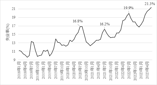 習近平總書記多次強調(diào),就業(yè)是最大的民生,青年就業(yè)工作要擺在更加突出位置。青年是國家的未來與希望,就業(yè)是青年群體最普遍、最迫切的需求之一。當前,我國16~24歲青年失業(yè)率連創(chuàng)新高,不利于經(jīng)濟社會穩(wěn)定發(fā)展。中咨公司課題組研究指出,當前青年失業(yè)率主要由經(jīng)濟增速和通脹水平回落以及供需錯配等因素造成,要充分認識到發(fā)展是解決青年失業(yè)問題的根本動力,做好職業(yè)教育和高等教育“兩頭抓”、不斷豐富就業(yè)信息來源和拓寬就業(yè)渠道、多途徑為失業(yè)青年提供保障,促進青年更好成長、更快發(fā)展。 一、青年失業(yè)率處于近年來高位 (一)當前青年失業(yè)率約為疫情前的兩倍,成為拖累整體失業(yè)率的主因。統(tǒng)計局數(shù)據(jù)顯示,疫情前我國青年失業(yè)率均值穩(wěn)定在10%左右,目前已經(jīng)超過20%。2020年青年失業(yè)率受疫情沖擊,月度峰值升至16.8%,2021年的月度峰值略微回落至16.2%,2022年全年的均值高達17.5%,為社會整體失業(yè)率的3.15倍,其中月度峰值達19.9%,創(chuàng)有記錄以來新高。今年4月,青年失業(yè)率首次突破20%,5月升至20.8%,6月份繼續(xù)攀升至21.3%,環(huán)比上升0.5個百分點,已經(jīng)連續(xù)3個月創(chuàng)記錄新高,超過當月社會整體失業(yè)率的4倍。 圖1 全國16~24歲人口城鎮(zhèn)調(diào)查失業(yè)率變動趨勢圖 (二)失業(yè)率高于全球平均水平及主要經(jīng)濟體。2022年全球青年失業(yè)率平均為14.9%,其中歐洲和中亞地區(qū)為16.4%,亞太地區(qū)為14.9%,北美地區(qū)為8.3%,美國的青年失業(yè)率在2020年4月達到27.4%的峰值,但2022年已經(jīng)穩(wěn)定控制在8.5%以下,全球主要地區(qū)的青年就業(yè)形勢好于我國。 (三)低學歷人群是失業(yè)青年的主力,面臨更大的失業(yè)風險。相較于高校畢業(yè)生,高中及以下的低學歷青年人數(shù)更多,成為影響當前青年失業(yè)率的重要因素。根據(jù)第七次人口普查數(shù)據(jù),當前我國16~24歲的人口數(shù)量剔除在校生后,高中及以下低學歷就業(yè)人數(shù)占比近70%。按照青年人口數(shù)和調(diào)查失業(yè)率推算,青年失業(yè)人口可能超過2400萬人,2022年高校畢業(yè)生剔除繼續(xù)升學人數(shù)后的求職人數(shù)約為950萬人,表明當前失業(yè)青年中低學歷人群的影響不容忽視。此外,2022年青年農(nóng)民工的數(shù)量為2800萬人,該人群的工作崗位不穩(wěn)定更易受經(jīng)濟波動影響,值得引起更多關(guān)注。 圖2 全國青年失業(yè)人數(shù)與高校畢業(yè)生人數(shù)對比圖 二、原因分析 (一)經(jīng)濟增速和通脹水平回落推高失業(yè)率。一方面,疫情以來經(jīng)濟增速回落推高失業(yè)率。奧肯定律揭示出宏觀經(jīng)濟增速和失業(yè)率呈反向關(guān)系,我國目前的經(jīng)濟增速仍未恢復(fù)至疫情前的水平,2023年2季度實際GDP環(huán)比增速出現(xiàn)回落,低于預(yù)期。同時,我國經(jīng)濟面臨增速換擋,自然會出現(xiàn)失業(yè)率的走高,直接表現(xiàn)為作為初入就業(yè)市場的青年群體就業(yè)難現(xiàn)象。另一方面,通脹水平持續(xù)下滑短期內(nèi)抑制就業(yè)。近期國內(nèi)的通脹水平持續(xù)走低,數(shù)據(jù)顯示,自2023年3月開始,我國CPI已經(jīng)連續(xù)4個月低于1%,6月份,CPI已經(jīng)降至0%,PPI同比下降5.4%,PPI同比降幅連續(xù)6個月不斷擴大。根據(jù)菲力普斯曲線,短期內(nèi)失業(yè)率與通貨膨脹率之間存在明顯的交替關(guān)系,因此,國內(nèi)的低通脹進一步推高了失業(yè)率。 圖3 短期內(nèi)失業(yè)率與通貨膨脹率之間的關(guān)系 (二)供需錯配進一步加劇失業(yè)風險。一是部分行業(yè)用人需求出現(xiàn)萎縮。根據(jù)普查數(shù)據(jù),有近50%的青年人就業(yè)主要集中在制造業(yè)、批發(fā)零售、住宿餐飲等行業(yè),但是近年來受疫情沖擊,居民消費需求恢復(fù)緩慢,住宿餐飲等服務(wù)行業(yè)收縮明顯,同時勞動密集型制造業(yè)與低端制造外遷,致使其吸納就業(yè)能力下降,對青年群體尤其是低學歷青年就業(yè)形成拖累。二是畢業(yè)生供給持續(xù)創(chuàng)新高。每年高校畢業(yè)生人數(shù)都在持續(xù)遞增,2023年高校畢業(yè)生已經(jīng)達到1158萬人,比本世紀初高出十倍之多,剔除考公、考研、出國的人數(shù),預(yù)估仍將有950萬應(yīng)屆生進入職場,激烈程度每年只增不減。再加上近年外國留學人員回國求職人數(shù)上升,進一步增加了青年求職群體的就業(yè)壓力。三是結(jié)構(gòu)性矛盾突出。一方面,青年學生就業(yè)觀不實際。很多畢業(yè)生對就業(yè)環(huán)境、行業(yè)、城市的期望與實際勞動力市場提供的條件存有落差,青年不再愿意入職傳統(tǒng)的制造業(yè)工廠,甚至出現(xiàn)“3000元工廠招不到藍領(lǐng)工人,寫字樓卻可以招到大學生”的說法。并且近年來越來越多畢業(yè)生競爭有限的公職崗位,耽誤了最佳的就業(yè)時機。另一方面,知識和能力跟不上需求。在信息密集型服務(wù)業(yè)、知識密集型服務(wù)業(yè)等領(lǐng)域,眾多低學歷青年的知識儲備和能力無法滿足企業(yè)要求。此外,當前高校的教育與社會需求脫節(jié),導致人才培養(yǎng)滯后于產(chǎn)業(yè)結(jié)構(gòu)調(diào)整和市場需求變化。 三