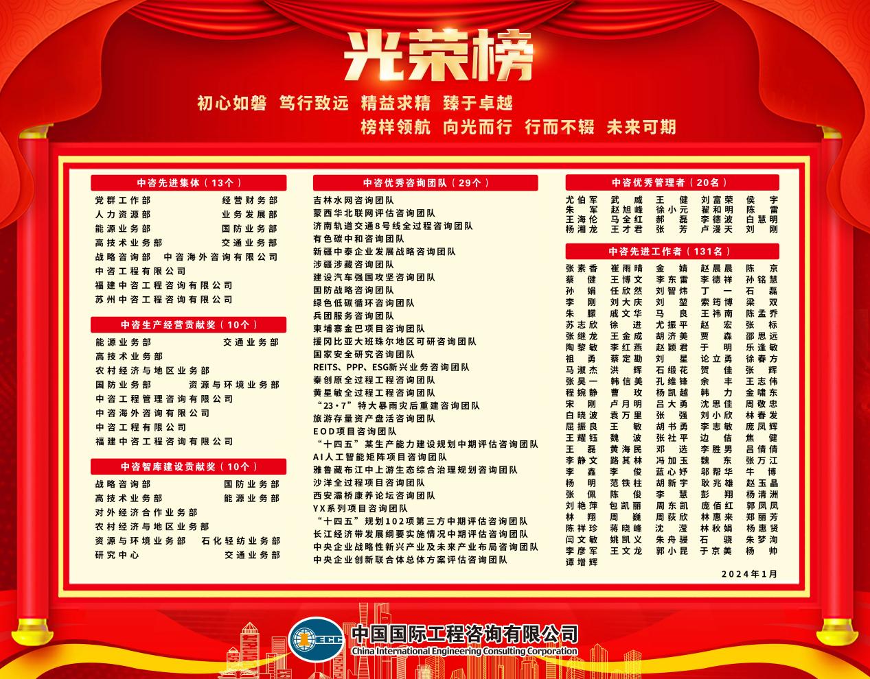 闊步新征程,昂首向未來。1月30日,中咨公司召開2024年度工作會議。會議的主要任務是,以習近平新時代中國特色社會主義思想為指導,全面貫徹黨的二十大、二十屆二中全會精神和二十屆中央紀委三次全會精神,落實中央經濟工作會議部署和中央企業(yè)負責人會議要求,全面總結公司2023年工作,聚焦新時代新征程面臨的新形勢新任務,謀劃下一階段落實好“五五戰(zhàn)略”的具體路徑,部署2024年重點任務,推動公司高質量發(fā)展再創(chuàng)新局面。 公司黨委書記、董事長、總經理茍護生作《扎實推動“五五戰(zhàn)略”落地生根 奮力開創(chuàng)公司高質量發(fā)展新局面》主題報告。黨委委員、總會計師王麗靜主持會議。黨委委員、中咨戰(zhàn)略研究院執(zhí)行院長竇皓宣讀《公司黨委關于表彰2023年度先進集體和先進個人的決定》。黨委委員、副總經理潘小海傳達中央經濟工作會議、中央企業(yè)負責人會議、全國發(fā)展和改革工作會議精神。黨委委員、副總經理沈浩傳達國務院國資委黨風廉政建設和反腐敗工作會議精神。國家審計署企業(yè)審計八局有關同志以及公司外部董事楊愛民、余德輝出席會議。會議期間還表彰了2023年度先進集體和個人以及簽訂2024年度經營考核責任書。 會議指出,2023年,公司深入開展習近平新時代中國特色社會主義思想主題教育,堅定不移落實“五五戰(zhàn)略”,加快建設國家高端智庫和世界一流咨詢機構,在服務中央科學決策和國家重大戰(zhàn)略方面做出突出貢獻,核心功能和核心競爭力更加凸顯,圓滿完成國資委各項考核指標。公司咨詢服務工作得到委托方高度認可,收到中央部委、地方政府、大型企事業(yè)單位等各方感謝信240封,100多名個人和團隊受到表揚。公司榮獲菲迪克“卓越工程項目獎”“優(yōu)秀工程項目獎”各1項、魯班獎4項、國家優(yōu)質工程獎9項,獲得“2023年度誠信經營守信踐諾標桿企業(yè)”榮譽稱號。 會議從九個方面系統(tǒng)回顧過去一年的主要業(yè)績。智庫建設勇攀高峰,上報決策咨詢成果數量、質量雙雙再創(chuàng)歷史新高;服務國家戰(zhàn)略做出新貢獻,在服務國家重大戰(zhàn)略規(guī)劃評估、國家重大工程建設、高水平支撐現代化產業(yè)體系建設和科技自立自強、踐行綠色發(fā)展理念、助力“一帶一路”行穩(wěn)致遠、保障國防軍工建設、服務國資央企高質量發(fā)展等方面展現擔當作為;生產經營逆勢上揚,“一利”穩(wěn)定增長,“五率”持續(xù)優(yōu)化;業(yè)務結構持續(xù)優(yōu)化,新興業(yè)務穩(wěn)步增長,總部部門與所屬企業(yè)協(xié)同效應更加突出,“6+1”全過程咨詢產業(yè)鏈條進一步完善;深化改革實現新突破,形成新時期推動公司高質量發(fā)展的“五五戰(zhàn)略”,新一輪改革深化提升行動高質量起步,董事會運行更加規(guī)范、作用更加突出;建設世界一流咨詢機構邁出堅實步伐,在對標世界一流價值創(chuàng)造、豐富資質體系、品牌引領、區(qū)域化布局、數字化運營、標準化建設、財務信息化、干部選任、專家隊伍建設、智庫成果發(fā)布等方面取得新成效;風險內控工作持續(xù)加強,推進審計全覆蓋,健全合規(guī)管理體系,安全生產形勢總體穩(wěn)定;黨的建設開創(chuàng)新局面,在主題教育中一體推進理論學習、調查研究、推動發(fā)展、檢視整改,宣傳思想、工會、統(tǒng)戰(zhàn)、團青等各項工作邁上新臺階;全面從嚴治黨縱深推進,突出政治監(jiān)督,做實日常監(jiān)督,加強作風建設,開展紀檢干部隊伍教育整頓和巡查式、回訪式、機動式巡視,黨風廉政建設和反腐敗工作走深走實。公司各項工作全面推進,呈現穩(wěn)中求進、進中向好的發(fā)展態(tài)勢。 茍護生表示,在經濟下行壓力大、改革發(fā)展任務重、矛盾風險挑戰(zhàn)多的背景下,公司取得發(fā)展成績殊為不易,根本在于以習近平同志為核心的黨中央堅強領導,是國務院的信任和各部委大力支持、國資委直接指導的結果,是全體干部職工團結拼搏的結果。新的一年要延續(xù)良好勢頭,就要深入研判當前形勢,科學謀劃下步工作??傮w而言,機遇大于挑戰(zhàn),有利條件強于不利因素。中央重視智庫建設、支持咨詢機構規(guī)范健康發(fā)展,工程咨詢服務被列為鼓勵類產業(yè),公司發(fā)展前景光明,要抓住有利時機、利用積極因素、加快發(fā)展步伐、再創(chuàng)輝煌業(yè)績。 茍護生指出,要增強戰(zhàn)略主動,采取“三步走”策略,即三年強基礎,到“十四五”末,公司高質量發(fā)展的基礎更加堅實;五年時上臺階,到“十五五”中期,公司新發(fā)展格局更加完善;十年時見輝煌,到公司成立50周年前后,國家高端智庫和世界一流咨詢機構基本建成。這個“3510”步驟與國家2035年基本實現社會主義現代化的宏偉目標保持同步。 茍護生強調,要實施“強基提質”八個專項行動,即組織優(yōu)化行動、業(yè)務創(chuàng)新行動、管理提升行動、質量品牌提升行動、標準建設行動、數智咨詢行動、人才強企行動、文化塑造行動,確?!拔逦鍛?zhàn)略”在實踐中得到高質量貫徹執(zhí)行。 會議指出,2024年是中華人民共和國成立75周年,是實施“十四五”規(guī)劃的關鍵之年。公司工作的總要求是:以習近平新時代中國特色社會主義思想為指導,全面貫徹落實黨的二十大、