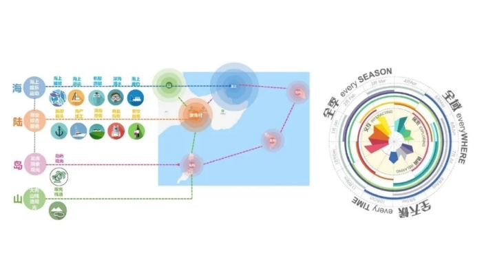 2024年10月15日下午,習近平總書記在福建省漳州市東山縣,考察陳城鎮(zhèn)澳角村,了解當?shù)赝七M鄉(xiāng)村全面振興等情況,指出要“做好‘?!奈恼隆保诋?shù)匾l(fā)熱烈反響。長期以來,習近平總書記的系列重要論述為鄉(xiāng)村振興和鄉(xiāng)村規(guī)劃指明了方向?!懊褡逡獜团d,鄉(xiāng)村必振興”“鄉(xiāng)村振興是一盤大棋,要沿著正確方向把這盤大棋走好,必須規(guī)劃先行”,這些論述深刻闡明了規(guī)劃設計在鄉(xiāng)村振興中的重要作用,強調鄉(xiāng)村振興要堅持規(guī)劃先行、切實發(fā)揮規(guī)劃引領作用。作為漳州市城鄉(xiāng)規(guī)劃建設的重要技術支撐單位,福建中咨規(guī)劃集團堅持以規(guī)劃賦能,走好鄉(xiāng)村規(guī)劃這步“先手棋”,助力澳角村在鄉(xiāng)村振興的千帆競發(fā)中并進爭先。 澳角村位于東山縣的東南部,兩海交匯、三面朝海、四島守護,面積6.83平方公里。全村現(xiàn)有大馬力鋼質漁船88艘、水產(chǎn)品加工企業(yè)38家、海鮮電商117家、民宿41家。2023年村集體收入173萬元,農民人均可支配收入5.8萬元,先后獲評全國文明村、全國最美漁村等稱號。 全景俯瞰圖 近年來,福建中咨規(guī)劃集團結合地方實際情況和規(guī)劃工作特點,在澳角村開展《東山縣陳城鎮(zhèn)澳角村旅游規(guī)劃暨人居環(huán)境提升規(guī)劃設計》《東山澳角雙月灣、大肉山景區(qū)旅游策劃及景觀概念方案設計》等多個規(guī)劃設計項目,為澳角村鄉(xiāng)村振興工作奠定基礎。 依山傍海,村美民富。項目組深挖澳角村特色文化,打響東南沿海漁旅融合新標桿,將“匠心”體現(xiàn)在鄉(xiāng)村振興的每一絲脈絡、每一處細節(jié)。 因地制宜 促進鄉(xiāng)村產(chǎn)業(yè)融合 澳角村具有依山傍水的空間肌理、風景秀麗的自然風光和得天獨厚的資源稟賦。作為集度假休閑、娛樂交互、藝術文化交流為一體的多功能都市海岸,澳角村著力打造以海洋開發(fā)為核心的旅游、生產(chǎn)、生活區(qū),并逐步形成以海洋捕撈及養(yǎng)殖業(yè)、水產(chǎn)品精深加工產(chǎn)業(yè)、鄉(xiāng)村旅游產(chǎn)業(yè)、電商微商產(chǎn)業(yè)為發(fā)展基礎的四大產(chǎn)業(yè),造福當?shù)厝嗣瘛?/span> 福建中咨規(guī)劃集團在充分了解村民對產(chǎn)業(yè)升級的需求后,著手梳理澳角村產(chǎn)業(yè)發(fā)展現(xiàn)狀,針對“向海而生”的產(chǎn)業(yè)發(fā)展訴求,設計團隊創(chuàng)新“海洋+文旅”模式,探索文旅新質生產(chǎn)力發(fā)展路徑,賦能漁村漁旅高質量融合發(fā)展,唱響“山海經(jīng)”新篇章。 設計團隊為滿足多節(jié)點、多層次、多樣性的旅游和生產(chǎn)生活需求,在時間上,堅持“全季節(jié)、全天候”的產(chǎn)業(yè)項目策劃,遵循當?shù)貪O業(yè)作息規(guī)律,引導游客、村民進行濱海技藝觀賞和節(jié)慶互動;在空間上,融合“山-陸-海-島”的聯(lián)動發(fā)展模式,將海上娛樂、商業(yè)服務、自然觀光相結合,塑造山海一體的澳角村度假品牌形象。 “海洋+”發(fā)展策略 設計團隊的心血在實踐中取得良好成效。近年來,在第十四屆全國人大代表、澳角村黨委書記林華忠的帶領下,澳角村發(fā)展冷鏈倉儲,借力電商直播等平臺,讓海產(chǎn)品“游”上互聯(lián)網(wǎng),遠銷海內外。同時,澳角村依托其地形優(yōu)勢和豐富的旅游資源發(fā)展鄉(xiāng)村旅游,逐步成為澳角村新的發(fā)展引擎。 黨建引領 繪就鄉(xiāng)村振興圖景 作為鄉(xiāng)村振興試點村,澳角村連續(xù)五屆榮獲中央文明委授予的“全國文明村”稱號,先后獲得“福建省新農村建設示范村”“福建省鄉(xiāng)村旅游特色村”等榮譽稱號。澳角村黨委發(fā)揚敢為人先、敢于拼搏的精神,全面加強基層黨組織建設,致力打造“海味黨建、號角先鋒”黨建品牌,以“黨建+鄉(xiāng)村振興”為載體,全力實現(xiàn)“支部創(chuàng)五星、黨員當先鋒、海味黨建濃、鄉(xiāng)村振興實”的目標。這種黨建與地方發(fā)展相融互促的鮮明特色,也成為中咨項目組在規(guī)劃中著力突出的亮點。 項目組通過調研發(fā)現(xiàn),主要居民點西北側主入口沿街兩側風貌較差,于是,他們腦洞大開,通過給街道“老墻上新妝”,巧妙地將黨建文化建設與村容村貌提升工作相結合,突顯地方黨建特色。同時深入挖掘東山紅色文化,選取谷文昌同志在東山植樹造林防風治沙的偉大事業(yè)與鄉(xiāng)村振興的實踐工作為題材,將澳角村地方黨建事跡、特色黨建文化融入黨建墻設計,提升文化在地性;優(yōu)化行道樹及周邊綠地植物配置,為澳角村道路提升提供良好示范。 澳角村黨建墻立面效果圖 “項目中我們進一步落實了鄉(xiāng)村規(guī)劃中加強村莊規(guī)劃的宣傳工作要求?!表椖控撠熑肃嵨跽f道,“在設計中我們將海浪紋與照片墻相結合,既體現(xiàn)了東山海島的自然風貌,又使照片墻帶來歷史長河承載古今、谷文昌精神不斷延續(xù)的景觀文化效果。” 生態(tài)整治 提高人居環(huán)境質量 澳角村古厝風貌獨具特色,站在古厝最高處可欣賞山海美景,而穿梭在古厝間,又可在歷史街巷、“國姓井”等地體驗古色古香。但古厝的古典風貌也伴隨著整體環(huán)境堪憂、電線錯亂、垃圾散落、部分墻體殘破等問題,整體規(guī)整亟需提升。項目團隊結合古厝現(xiàn)