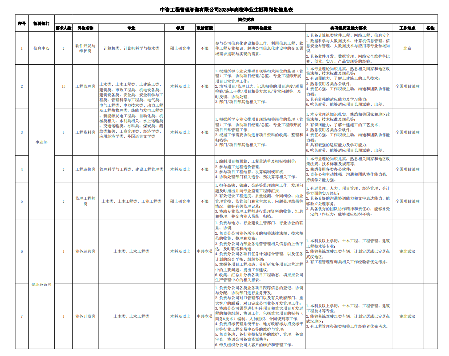 中國國際工程咨詢有限公司所屬企業2025年校園招聘公告(招聘已結束) | ||||