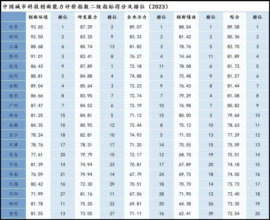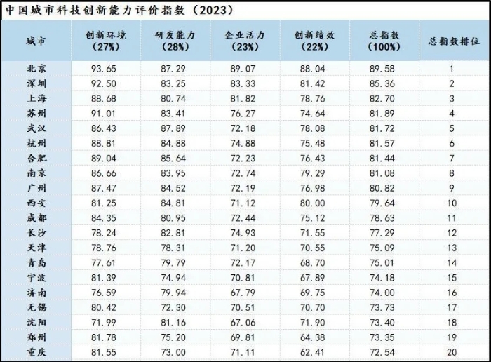 一、城市發展活力與科技創新能力
