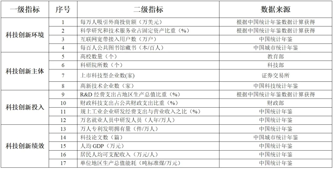 被細分為科技企業、高新企業和科研單位三個要素。科技型企業數量是反映城市科技創新活力的重要指標。①科技企業通常具有較高的創新能力和技術實力,是推動城市科技創新的重要力量;②高新技術企業數量是反映城市科技創新水平的重要指標,這些企業通常具有較高的技術水平和市場競爭力,是推動城市科技創新的重要引擎。③科研單位包括院校、科研院所、實驗室等,為科研人員提供了良好的實驗條件和研究環境,促進了科研合作和創新人才培養,推動了產業升級和城市發展。
