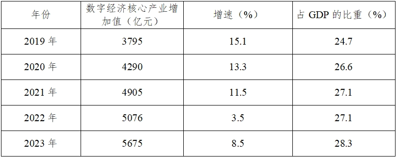 表1 杭州市2019-2023年數字經濟發展情況表