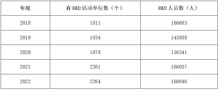 表3 天津市2018-2023年R&D單位及人員統計表