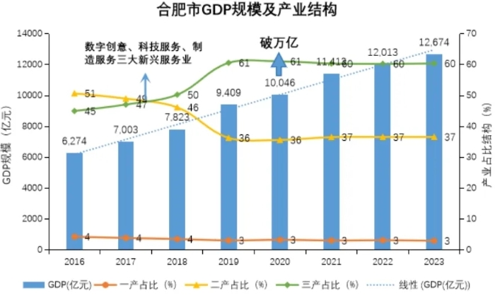 圖1 合肥市2016-2023年GDP規模及產業結構發展示意