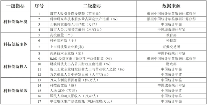 表4 城市發展活力科技創新評價指標體系