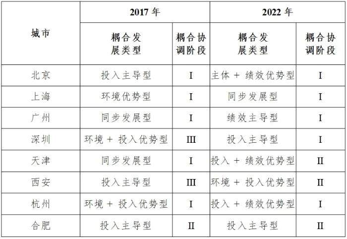 投入主導型城市2017年和2022年同樣為5個,說明當科創環境穩定后,一定規模的人力和經濟投入是保證城市發展活力具有可持續性的重要保障。