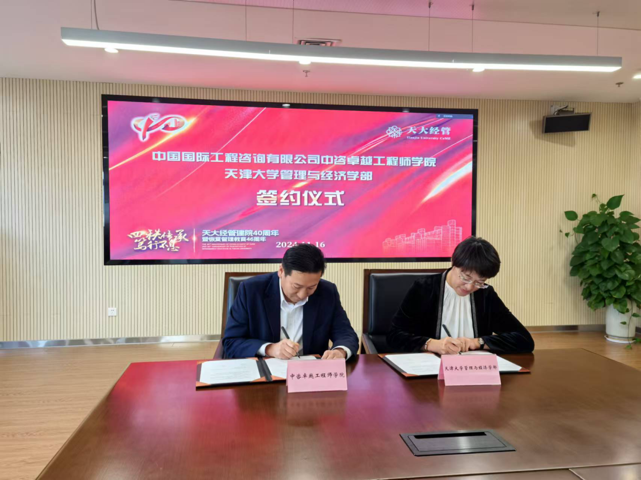 中咨卓越工程師學(xué)院與天津大學(xué)管理與經(jīng)濟(jì)學(xué)部合作簽約儀式暨“中咨-天大”經(jīng)管精品課首講圓滿舉行