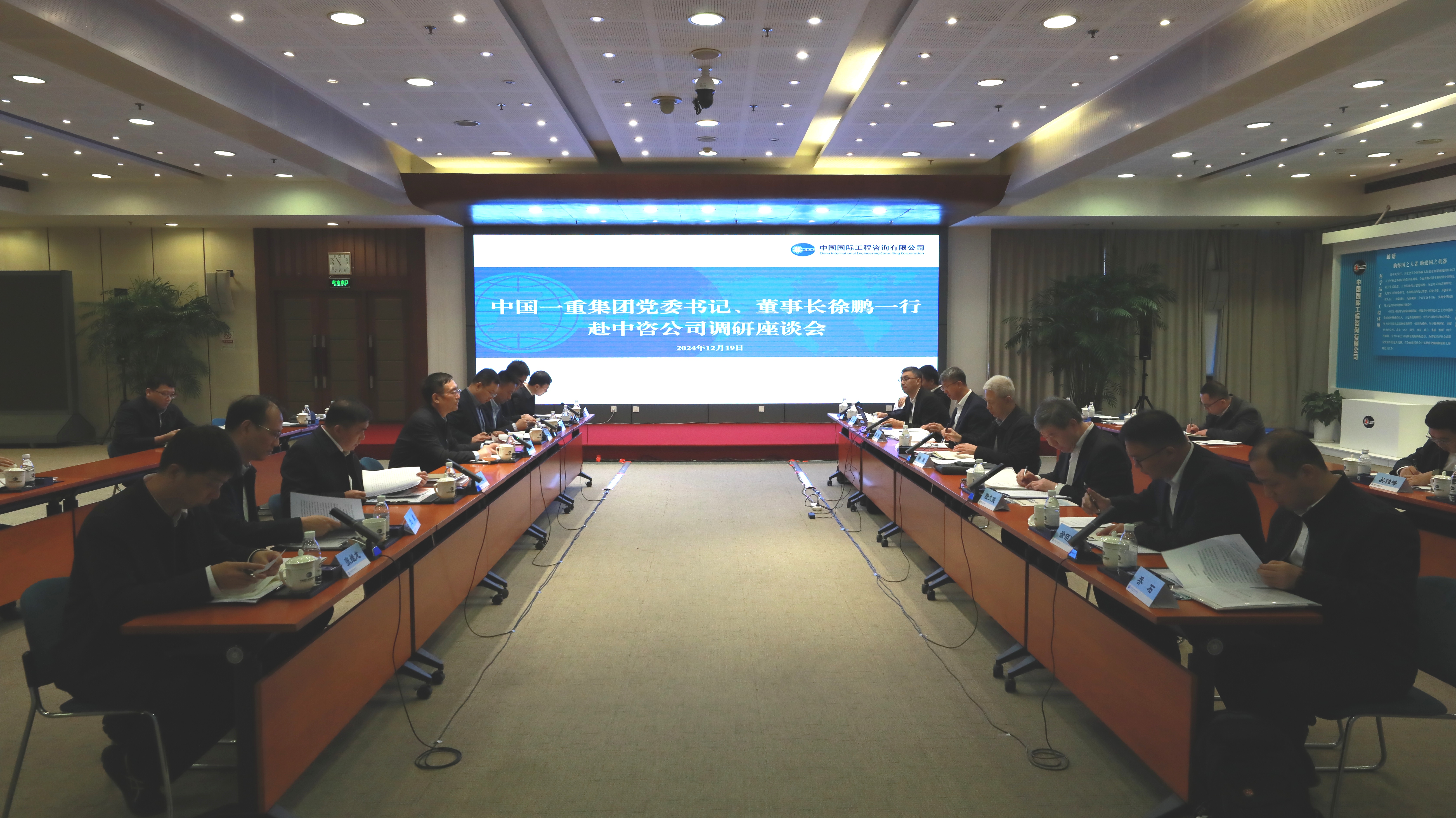 2024年12月19日,中咨公司黨委書記、董事長茍護生在中咨大廈會見中國一重集團公司黨委書記、董事長徐鵬一行,雙方圍繞深入學習領會習近平總書記視察中國一重重要指示精神、貫徹落實黨的二十屆三中全會關于推動制造業高端化、智能化、綠色化發展重要部署開展座談交流。 茍護生對徐鵬一行來訪表示歡迎,并介紹中咨公司立足主責主業、服務國家裝備制造業高質量發展的系列舉措。他指出,制造業特別是裝備制造業是立國之本和強國之基。中國一重被習近平總書記譽為“中國制造業第一重地”,成立70年來,為發展壯大民族裝備工業作出重要貢獻,以實際行動譜寫了實業報國、產業報國的壯美篇章。當前,我國正加速推進現代化工業體系建設和產業結構優化升級。中咨公司與中國一重使命相通、目標一致。期待雙方持續深化合作,攜手為推進中國式現代化建設貢獻更大的央企力量。一是深入學習貫徹習近平總書記兩次視察中國一重以及今年給中國一重產業工人代表回信的重要指示精神,以切實舉措賦能建設制造強國和東北全面振興。二是增進互信、凝聚共識,以重大工程項目為抓手,在核電、石化、船舶等重點領域持續深化合作,推動制造業高端化、智能化、綠色化發展。三是堅持資源共享、優勢互補,以中咨公司“五五戰略”和中國一重“13691”發展戰略為引領,攜手做強做優做大國資央企,讓越來越多技術先進、種類多樣、品質可控的中國高端裝備走向世界。 徐鵬高度贊賞中咨公司成立40余年來在服務黨中央科學決策和國家重大戰略上作出的重要貢獻。他指出,中國一重深入學習貫徹習近平總書記系列重要指示精神,正加快構建以高端裝備、專項產品、高端材料、工程與國際貿易、現代制造服務業、新能源開發與利用、戰略性新興產業及未來產業為主體的“6+1”產業布局,期待與中咨公司深化合作、共謀發展。一是堅決貫徹落實習近平總書記視察黑龍江時的重要講話精神,牢牢把握黑龍江在國家發展大局中的戰略定位,助力黑龍江建好建強重型裝備生產制造基地,推動東北老工業基地全面振興。二是堅持創新驅動發展,重點加強在冶金裝備、石化裝備、鍛壓裝備、高端鑄鍛件、國產化大型LNG運輸船等方面的深入合作,推進重大技術裝備國產化。三是借助中咨公司熟悉政策、了解行業的綜合優勢,助力中國一重按照國家戰略需要、行業發展趨勢和公司發展需求,制定“十五五”戰略規劃、科技發展規劃。四是發揮中咨公司國家高端智庫優勢,為中國一重戰略性新興產業開拓、工廠建設以及建設創新中心與技術中心提供支撐。 座談會前,茍護生和徐鵬一行共同觀看雙方宣傳片,參觀中咨公司高端智庫建設成果展。 中國一重集團公司黨委常委、副總經理陸文俊,中咨公司黨委委員、副總經理沈浩以及雙方相關部門負責同志一同參加上述活動。 | |||||