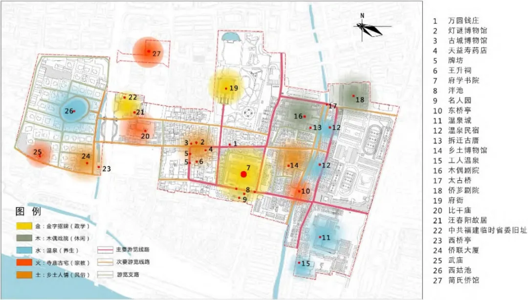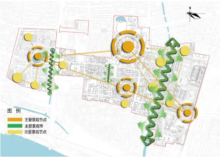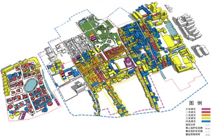 文化傳承視角下的漳州古城保護與更新策略研究 張健 摘要:歷史古城承載著中華民族的血脈和記憶,具有極大的保護價值。如何在保持古城風貌的同時進行合理更新改造,是一項值得深究的重要課題。本文基于文化傳承的視角,以漳州古城為例,分別從建筑風貌、文化底蘊、公共空間、街巷肌理、生活氣息五個方面分析了漳州古城的文化特色及保護現狀,并以突出漳州古城“閩南風、漳州味、宋河韻、老街情、慢生活”的地域文化特征為目標,分別提出打造閩南名片、延續文化脈絡、重現宋河古韻、恢復街巷肌理、保留生活氣息的古城保護與更新策略。 關鍵詞:古城;保護更新;文化傳承;漳州 一、研究背景 近年來,我國一直處于城鎮化飛速發展的階段,城市經濟水平逐漸提高。但同時,快速城鎮化導致城市呈現“粗放式”發展的局面[1],使得城市無秩序地蔓延和擴張,從而導致了一系列復雜的城市問題。長久以來,城市的發展過于追求經濟效益和價值,而忽視了對于空間品質提升的需求,這也就導致了城市內部很多特色區域、歷史地段因違背了經濟利益而被侵蝕、被破壞,甚至逐漸走向衰亡,城市失去了原有的文脈和特色。 歷史文化街區作為一個城市聯結歷史與未來的紐帶,承載著中華民族刻在基因里的傳承和血脈,從某種程度上來說,是一個城市生命的延續。歷史文化街區不應該作為一個 城市發展的犧牲品被湮沒在歷史長河中,而應該作為一個城市對外展示的名片被人們所記住。歷史風貌彌足珍貴、歷史街區不可再生[2],若想要延續歷史文化街區的精神和記憶,必須采取適宜的手段對其進行適度開發與更新,以在發展與保護之間求得平衡[3],實現“在保護中發展,在發展中保護”[4]。歷史文化街區傳承的文化是其最重要的底色,對于歷史文化街區的保護可以考慮活化更新的方式,在保證文化記憶傳承的同時適當注入新鮮血液,在最大限度地保存建筑風貌、保護街巷肌理的同時,重塑場所精神,實現真正的可持續發展。 本文以位于歷史文化名城漳州市最重要的歷史文化街區漳州古城為研究對象,在分析其文化特色及保護現狀的基礎上,從文化傳承的角度探討了漳州古城保護與更新的策略。 二、研究區域概況 漳州古城位于“海濱鄒魯”之一的福建省漳州市中心區,是漳州市最具保護價值的片區。漳州古城始建于唐垂拱二年[5],擁有一千三百余年的悠久歷史,有“唐宋古城、明清街區、民國風貌、閩南韻味、僑臺同輝”之美傳[6]。漳州古城歷經滄桑,始終保留著其獨特、鮮明的人文氣息和民俗風情,文化旅游資源極為豐富。 本文基于文化傳承的視角,探討如何在最大限度保留漳州古城文化風貌的同時活化古城、留住鄉愁,突出漳州古城“閩南風、漳州味、宋河韻、老街情、慢生活”的地域文化特征,提出最適宜漳州古城的保護更新發展策略,實現漳州古城的活力重構和有機更新。 三、漳州古城文化特色及保護現狀 漳州古城建筑風貌完好、文化底蘊深厚、公共空間多樣、街巷肌理獨特、生活氣息濃厚,既保留獨特的歷史人文底蘊,又延續著傳統生活方式,文化特色鮮明,具有極高的保護價值。 (一)建筑風貌完好 漳州古城文物古跡眾多,核心保護區建筑以晚清、民國時期為主(圖1),不乏比干廟、文廟等宋代及明代具有濃厚歷史風味的建筑。同時,古城內部留存著許多名人舊居及知名場所(圖2),這些建筑見證了漳州多年來的歷史變遷和文化發展,是連接歷史與未來的通道,也是傳承文化記憶的媒介。 圖1 漳州古城現狀建筑年代分析 圖2 漳州古城名人舊居和知名場所分布示意圖 對現狀歷史建筑的建筑風貌、建筑質量、歷史意義等因素進行評估,將建筑分為文保建筑、一類建筑、二類建筑、三類建筑、四類建筑五類。其中,文保建筑為極具歷史價值、意義重大的建筑;一類建筑為風貌完好、質量上佳的建筑;二類建筑為風貌尚可、質量稍差的建筑;三類建筑為風貌較差、質量不佳的建筑;四類建筑為風貌極差、質量極差的建筑。可以看到,古城中心區內歷史建筑整體保存較好,外圍區域保存較差,可有針對性地進行建筑風貌恢復、整理工作。 圖3 漳州古城歷史建筑風貌評估 (二)文化底蘊深厚 漳州古城文化底蘊深厚,始建于宋代的府學,在歷史上為國家培養了一批又一批的人才;僑鄉劇場薈萃了閩南風情與漳州特色,更凸顯出獨具魅力的漳州風味;木偶劇場擁有精湛的制作工藝與極具歷史氣息的表演,傳承著“源于晉、興于宋、盛于明”的布袋戲。同時,古城內儒家文化、道教文化、民間先祖信仰文化并存。這些文化是古城居民重要的精神寄托,維系著他們的精神家園。 在規劃中,我們除了要保護有形的建筑、街巷等空間外,更要保護好空間中蘊藏著的無形的文化。將文化作為觸媒點激活漳州老城,吸引更多客流。 (三)公共空間多樣 古城臨近宋河水系,周邊有山體公園、濱江公園以及小游園,開放空間類型較豐富(圖4)。目前只有中山公園的1公里服務范圍全覆蓋了古城規劃地區,基本滿足“500米見綠、1000米達園”的綠地布局要求,和構建“園在城中、城在園中、城園一體、園城共融”的現代田園型都市的目標。 圖4 漳州古城公共空間分布 但是,古城內部的開放空間不足,應在不破壞古城肌理的前提下,采取見縫插綠、立體綠化等方式,營造適當的小型交往空間,滿足古城居民平