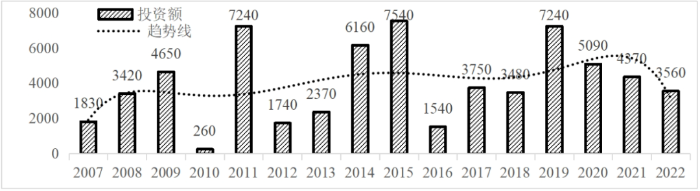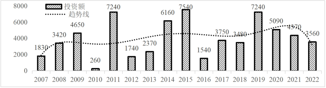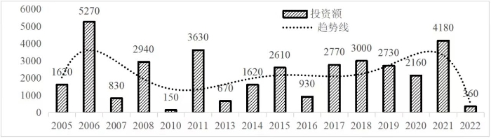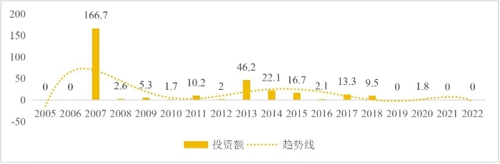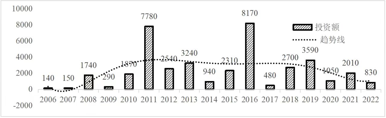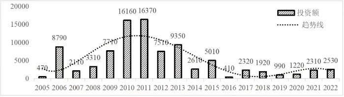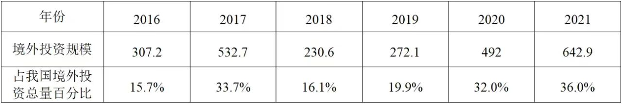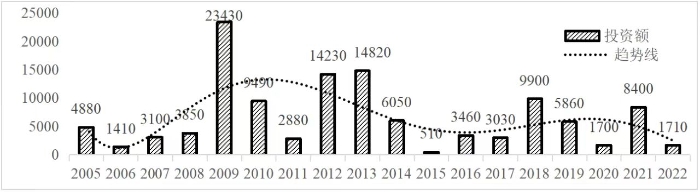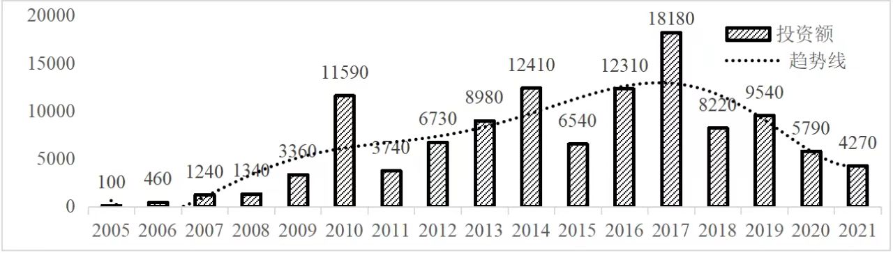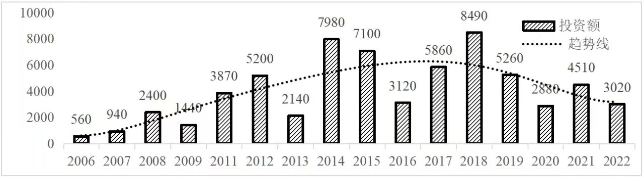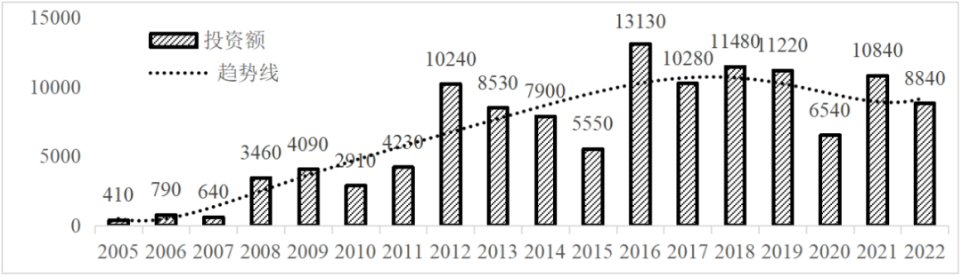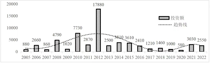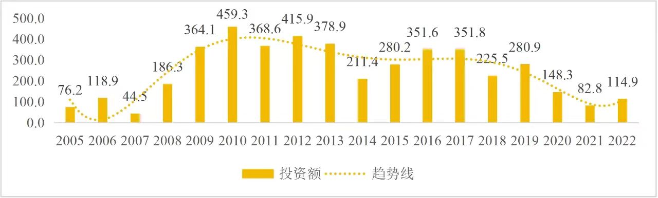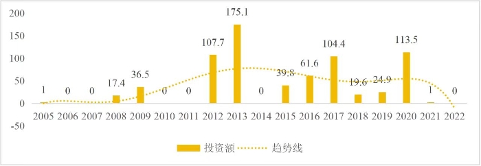 企業境外投資研究之二: 中央企業境外投資情況 楊凱越 編者按:根據商務部2023年10月發布的我國對外直接投資統計數據,截至2022年,我國對外直接投資存量達27548.1億美元,當年對外直接投資規模達1631.2億美元,居世界第二位。截至2022年底,中國2.9萬家境內投資者共設立境外企業4.66萬家,分布在全球190個國家(地區),年末境外企業資產總額8.4萬億美元。隨著“雙循環”戰略、“走出去”戰略和“一帶一路”倡議的深入推進實施,對企業境外投資開展系統研究,探索如何更高質量地開展境外投資,成為當前一項重要和緊迫的任務。本公眾號將企業境外投資研究成果以系列文章的形式陸續刊發,本文是研究報告的第二部分,供業界同仁參考。 一、總體情況 中央企業2013-2019年境外投資年均增速約15%,營業收入增速保持在約4.5%。根據國務院國資委和社科院聯合發布的《中央企業海外社會責任藍皮書(2020)》,中央企業在境外投資發展時,7%投資第一產業,69%參與第二產業,40%發展第三產業。截至2019年底,中央企業境外資產總額8.1萬億元、所有者權益2.3萬億元。其中,81家中央企業在“一帶一路”沿線承擔項目數量逾3400個。中央企業承擔“一帶一路”基礎設施項目數比率超過60%,合同投資額超過80%。 近年來,中央企業境外投資及運營總體仍呈現較為平穩的態勢。中央企業2013-2020年境外營業收入總規模逾24萬億元,利潤總規模約6000億元。2021年,中央企業和單位對外非金融類直接投資642.9億美元,占我國對外直接投資比重約36.0%,同比增長30.7%,逾60%來自收益再投資。根據國務院國資委《中央企業海外發展報告(2023)》,截至2022年底,中央企業境外投資機構和項目逾8000個,境外員工125萬人,境外資產總額近8萬億元(比2019年略有下降),當年境外投資規模3739億元。 表1 中央企業境外投資規模 單位:億美元 數據來源:商務部2016-2021年度中國對外直接投資統計公報。 本文根據中國全球投資追蹤(China Global Investment Tracker,CGIT)數據庫,按照國務院國資委2023年中央企業名錄,對我國中央企業境外投資情況進行了整理。因數據口徑不同,中央企業境外投資規模與前述商務部統計數據有所差異。根據CGIT數據,中央企業境外投資在2013年達到峰值858.7億美元,此后呈下降趨勢,2022年境外投資規模僅180.3億美元。 數據來源:CGIT數據庫,作者整理。 圖1 2005-2022年中央企業境外投資規模 單位:億美元 根據CGIT數據庫,中央企業2005-2022年各行業境外投資情況見圖2。其中,能源類境外投資規模最高,為4460.1億美元;建筑工程類(包括鐵路、公路等交通基礎設施建設類)境外投資規模其次,為1534億美元;金屬類(含礦產)境外投資排名第三為972.5億美元;公用事業類境外投資規模第四,為702.5億美元;此外,中央企業境外投資涉及領域還包括旅游、健康、金融、科技、農業、化工、物流、娛樂等。2018-2022年各行業境外投資情況見圖3。 數據來源:CGIT數據庫,作者整理。 圖2 2005-2022年中央企業分行業境外投資規模 單位:億美元 數據來源:CGIT數據庫,作者整理。 圖3 2018-2022年中央企業分行業境外投資規模 單位:百萬美元 二、分行業情況 本文對2005年1月-2022年12月我國中央企業境外投資選取能源行業、建筑工程行業、金屬行業、公用事業、旅游業等投資規模位居前列的行業,分行業情況進行了整理。 (一)能源行業 2005-2022年中央企業能源行業境外投資情況見圖4。分析發現,我國中央企業能源行業境外投資在2010年達到峰值后呈逐年下降的趨勢。 數據來源:CGIT數據庫,作者整理。 圖4 能源行業2005-2022年中央企業境外投資規模 單位:億美元 (二)建筑工程行業 2005-2022年中央企業建筑工程行業境外投資情況見圖5。分析發現,建筑工程行業境外投資在2009年達到峰值,此后呈逐年下降。 數據來源:CGIT數據庫,作者整理。 圖5 建筑工程行業2005-2022年中央企業境外投資規模 單位:億美元 (三)金屬行業 2005-2022年中央企業金屬行業境外投資情況見圖6。分析發現,金屬行業2007年達到投資峰值,此后逐年下降。 數據來源:CGIT數據庫,作者整理。 圖6 金屬業2005-2022年中央企業境外投資規模 單位:億美元 (四)公用事業 2005-2022年中央企業公用事業境外投資情況見圖7。分析發現,公用事業2013年達峰后,整體呈下降趨勢。 數據來源:CGIT數據庫,作者整理。 圖7 公共事業2005-2022年中央企業境外投資規模 單位:億美元 (五)旅游業 2005-2022年中央企業旅游業境外投資情況見圖8。分析發現,旅游業在2014-2019年間整體呈現較為平穩的對外投資規模,2019年后暫無相關對外投資。 數據來源:CGIT數據庫,作者整理。 圖8 旅游業2005-2022年中央企業境外投資規模 單位:億美元 三、企業個體情況 (一)概述 本文對2018年1月-2022年12月我國中央企業境外投資的非基礎設施類和基礎設施類投資分別進行了統計,表2和表3分別列出了非基建和基建類境外投資規模居于前10的企業。近5年來,我國中央企業非基礎設施建設類境外投資規模排名前5的企業分別為中國交通建設集團有限公司(以下簡稱中交集團)、中國廣核集團有限公司(以下簡稱中廣核集團)、中國長江三峽集團有限公司(以下簡稱三峽集團)、中國海洋石油集團有限公司(以下簡稱中國海油)和國家電網有限公司(以下簡稱國家電網),投資額分別為120.8億美元、118.2億美元、101.8億美元、78億美元和72.5億美元。 表2 近幾年中央企業境外投資(非基礎設