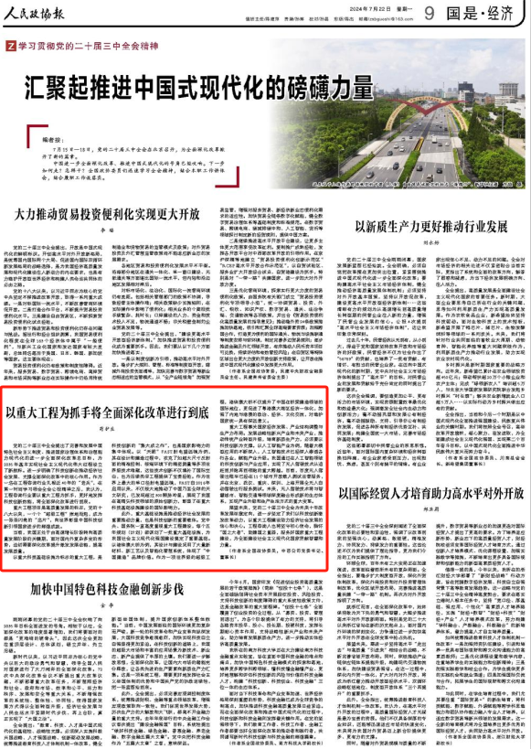 人民政協報:茍護生:以重大工程為抓手將全面深化改革進行到底