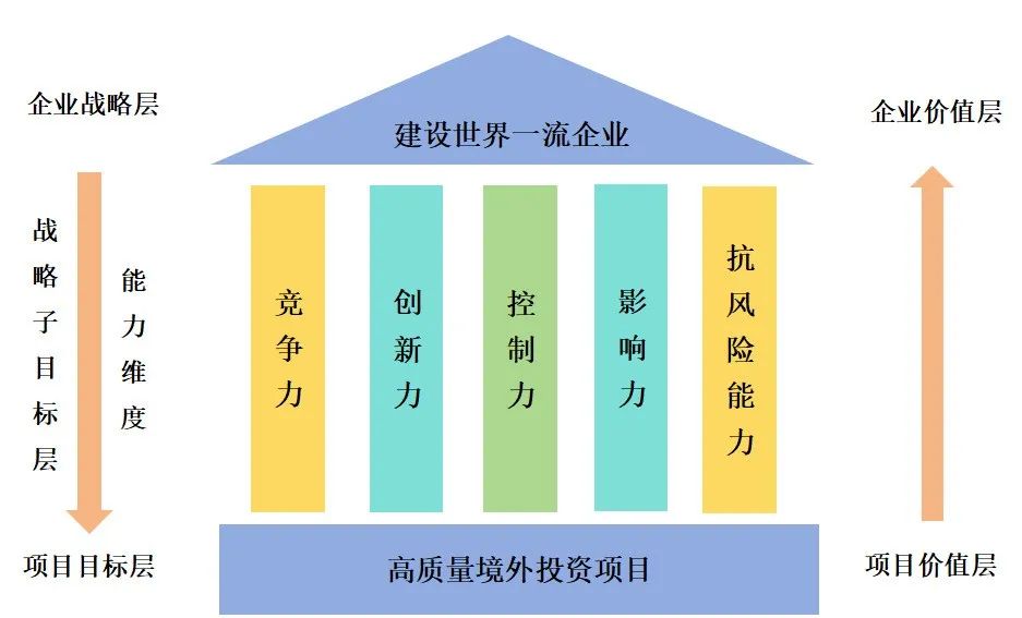 編者按:隨著“雙循環”戰略、“走出去”戰略和“一帶一路”倡議的深入推進實施,對企業境外投資開展系統研究,探索如何更高質量地開展境外投資,成為當前一項重要和緊迫的任務。我國擁有堅韌完整的產業鏈、高效穩定的社會治理和廣闊開放的消費市場,有望擔當全球經濟治理的改革者、國際供應鏈的樞紐站、跨國資本技術要素的集納方,以強大的兼容力、吸引力、整合力,為開拓新時代更高水平、更寬領域的國際共贏格局貢獻中國力量。本公眾號將企業境外投資研究成果以系列文章的形式陸續刊發,第一至第五部分是關于全球與我國境外投資的情況分析,第六至第八部分從戰略引領、價值創造的視角,以中央企業為主體,著重探討通過構建“戰略和價值”二維一體的境外投資模式,對境外投資決策進行分析和研判,對境外投資項目進行分類組合與資源配置,培育和壯大中央企業在特定的某個方面或多個方面可能存在的突出競爭優勢。第九部分和第十部分將分別闡述戰略和價值評價的基本方法和“戰略和價值”二維一體境外投資高質量發展模式的指標體系構建。本文是研究報告的第九部分,供業界同仁參考。 企業境外投資系列研究之九: 戰略和價值評價基本方法 楊凱越 本文針對中央企業的境外投資,構建了從企業戰略到項目目標、從項目價值到企業價值的投資模式和路徑,對企業層和項目層兩個層面進行研究。從而幫助中央企業更好地理解其特點和優勢,指導其境外投資決策和實施。其中,從企業到項目的研究意味著要從宏觀層面到微觀層面進行分析。在企業戰略層面,中央企業的境外投資戰略應該與國家戰略和企業發展戰略相一致,考慮國家利益和安全、企業長期發展戰略等因素。在項目層面,中央企業需要考慮投資目標的選擇、投資模式的設計、風險管理、項目執行等方面的問題。從項目價值到企業價值的研究都要關注中央企業在境外投資過程中的價值創造。這同時涉及企業整體的戰略目標與境外投資項目之間的契合度,境外投資項目的選擇、決策,境外投資項目群的構建等問題。 圖1 建設世界一流企業與高質量境外投資項目的戰略-價值關系圖 一、企業戰略層的評價 (一)企業戰略層的分解思路 1.企業戰略層分解的難點 (1)頂層戰略目標可能流于形式 大部分中央企業都十分重視戰略的制定,一些中央企業委托咨詢單位協助其制定公司的戰略規劃,但在部分企業中,仍然存在制定好的頂層戰略,未能得到良好地貫徹和實施,戰略目標停留在形式層面的情況。從高層、中層管理者到基層員工,對于制定戰略的背景以及政策了解程度不同,呈現出逐級減弱的態勢,因而公司管理層和基層員工對于戰略目標的理解以及對于戰略目標的執行有著較大差異,同層級中隨著部門的差異化而差異化,隨著層級降低而降低,不能有效形成資源合力。 (2)戰略的模糊性特征可能較難項目化分解 一方面,戰略本身具有模糊特性,將模糊性的戰略定性定量化分解、模糊的戰略項目式分解,對科學性和系統性有較高的要求。另一方面,大部分中央企業機構龐大,管理層級較多,境外投資項目往往僅屬于中央企業的某個獨立板塊,將企業戰略目標和項目戰略目標相匹配,通過項目指標進行戰略管理,可能存在項目戰略目標不能被各層級員工全面理解和執行的情況。 2.戰略分解的要點 (1)完成企業戰略目標向境外投資項目戰略目標的細分 戰略的執行需要將模糊、長遠的發展愿景、發展目標,轉變為具有可操作性的階段性目標和舉措。在實踐過程中,中央企業必須將已經制定的長期發展目標與短期的行動目標、獨立的境外投資項目目標、各層級與涉及個體的責任相統一相結合,將總體戰略細化落實到各個項目和各崗位員工的工作任務中。在戰略執行過程中,要構建較為全面、科學的戰略控制系統。針對戰略規劃,各層級單位及部門所承擔的目標及具體任務需要設定清晰的指導和指標,對項目部和員工個人的細分任務落實情況對照考核,從而確保企業總體戰略得到系統性的落實。 (2)完成關鍵指標的設置 在設計指標權重時,應考慮中央企業在不同階段的發展重點,以及其所處行業、性質(保障類、商業類等),根據企業實際情況的變化而及時變更指標,權重分配應能夠引導項目對相匹配的企業戰略的完成。大致應遵循以下原則: 1)平衡分布 一般而言,每個方面指標的權重應平衡,不能過高或過低。如果某一方面指標的權重過高,則可能導致高權重指標在工作中被過度關注,而忽視其他低權重指標;如果權重過低,指標極易被忽略,評價中也就失去了它的價值。為了便于計算和比較,指標權重一般設置為5%的整數倍,最小為5%。 2)戰略導向 指標的權重設計要能夠體現出企業戰略的發展方向,與企業戰略目標相關度越高的指標則權重越高、對企業戰略目標支持性高的指標權重高、綜合性強的指標權重高。 3)重點突出 根據帕累托法則,即著名的“二八原則”,一般一個方面最重要的指標只有2-3個,如果有2個,那么每個重要指標的權重都應在30%以上,其余指標的總和應低于40%;如果有3個,那么每個重要指標的權重一般在20%以上,其他一般指標的總和低于40%。 4)先定量后定性 在其他條件一致的前提下,可以根據“定量為主、定性為輔,先定量、后定性”的指標評價原則,優先設定定量類指標權重。定量
