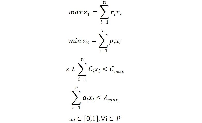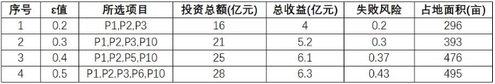 混合整數規劃 在項目群投資決策中的應用研究 劉義成 摘要:在高質量發展背景下,為支撐重大戰略落地、提升資金使用效益等,政府和企業通常會面臨多項目組合優化的投資決策問題。本文以多目標混合整數規劃為建模工具,構建一個以項目年均收益最大化為主要目標、失敗風險最小化為次要目標的項目群優化決策模型,通過引入ε-約束法將項目失敗風險作為約束條件納入模型體系,采用分支定界法對模型進行精確求解,并通過Python與CBC工具實現數值模擬。研究結果驗證了混合整數規劃模型在多目標與復雜資源約束條件下的應用價值,為政府或企業開展項目群投資決策提供了定量化分析借鑒。 關鍵詞:項目群投資;混合整數規劃;ε-約束法;分支定界法;優化決策 一、引言 當前,我國經濟和社會發展已進入高質量發展階段,在創新驅動發展、構建現代化產業體系、因地制宜發展新質生產力等重大戰略的引導下,政府、企業集團等市場主體的項目投資呈現多元化、集群化、系統化的發展趨勢,其中,項目群投資決策優化成為需要關注的熱點問題,也是固定資產投資決策管理的難點問題[1]。項目群是由若干具有內在聯系、資源共享或協同效應的投資項目組合,在當前高質量發展背景下,無論是政府開展的基礎設施投資、產業園區建設,還是大型企業集團開展戰略性投資,通常都會面臨多項目備選、多目標權衡、資源優化配置的復雜決策環境,如在資金、土地等資源限制下,風險與收益平衡的問題。 傳統的多項目投資決策問題,主要依賴專家咨詢法、層次分析法、凈現值法、多準則決策方法等,例如,M Kandakoglu等[2]研究不同多準則方法及其與數學規劃技術聯合在項目組合選擇中的應用;Hui Sun等[3]以BOT高速公路項目為對象,從財務角度計算了具有真實約束的最優投資組合,這些方法在處理當前創新驅動發展下的基礎設施規劃、產業集群建設等眾多項目備選的復雜場景時會顯得較為困難。 二、模型建立 目前,在多目標混合整數規劃建模研究方面,主要集中在供應鏈優化、能源管理等領域,如Teh等人[5]通過構建多目標混合整數線性規劃模型,研究棕櫚油生物質廢棄物轉化為高收率生物油涉及的年化總利潤和全球變暖潛力權衡問題。Jabarzadeh等[6]通過構建可持續水果閉環供應鏈網絡的多目標混合整數線性模型,同時考慮經濟、環境和社會指標,即最小化網絡總成本和不同網絡活動的二氧化碳排放量,同時最大化對需求的響應度同時納入模型,并采用加權Tchebycheff方法求解Pareto最優解。資源約束下的項目群多目標選擇優化問題,核心是在多重約束條件下,選擇哪些備選項目,在最大化投資收益的同時,確保整體風險在可容忍的限制范圍內。 (一)假設與參數定義 1.基本假設 (1)項目均為獨立單元,可被投資或不被投資; (2)已知年均收益、投資額、占地面積、失敗風險等指標參數; (3)項目失敗風險獨立,可簡單加和為整體風險水平; (4)項目間不考慮互斥或互補效應; (5)投資為單一決策,不考慮動態分期; (6)組合優化為一次求解,不考慮實時反饋機制。 2.參數定義 設項目集合 ,每個項目具有如下屬性變量: 表1 項目屬性變量表 (二)混合整數規劃模型構建 模型目標包括年均收益最大化的主目標和風險失敗風險最小化的次目標,數學表達式如下: 三、算法求解 混合整數規劃屬于NP-Hard類問題,主要有近似(啟發式)算法和精確算法兩類求解策略。近似(啟發式)算法是在問題規模較大或計算資源有限時,能夠快速找到接近最優的可行解,例如遺傳算法、模擬退火等,例如,張毅等[7]針對行調沖突的大型高鐵站到發線運用優化問題,構建到發線運用多目標優化模型,設計改進遺傳算法進行求解。精確算法即能夠找到全局最優解,例如分支定界法、分支切割法。本研究選擇使用精確算法,即分支定界法,求得真正意義上的最優投資組合。 1.ε約束法 ε約束法由Haimes等人在1971年提出,是一種經典的多目標優化策略,適用于目標函數可解耦的情況,核心思想是保留一個目標函數作為主目標,其余目標函數轉化為約束形式,并設置“ε”作為可接受上限或下限。例如,文獻[8-10]分別研究了基于模型的ε-約束法在車輛服務設施選址、考慮跑道復雜依賴關系的多目標飛機排序、震后初期多品種應急物資動態分配等領域的Pareto最優解集。通過引入ε約束法,本文構建的模型可以轉化為: 2.分支定界法 分支定界法(Branch and Bound)是一種系統性搜索算法,適用于解決混合整數規劃問題,例如,Luo Jianchao等[11]針對由放置定時Petri網建模的易死鎖柔性制造系統的調度問題,基于網模型的分支樹和高度允許的死鎖控制器,提出了一種隨時分支和約束(AB&B)算法,以最大限度地減少系統工期。利用分支定界法,求解的主要步驟包括:對原問題進行松弛求解獲得參考解,即忽略整數約束;若參考解為整數,則為可行解;若參考解非整數,則選擇一個非整數變量進行“0-1”分支;對兩個子問題分別繼續遞歸求解,并通過求上下界進行定界,以判斷是否繼續分支或剪枝。該方法保證在有限時間內搜索完所有可能組合,并返回全局最優解。 在本文構建的模型中,每個項目是否選擇由決策變量 四、算例分析 為檢驗上述模型建立和算法求解的有效性,運用PuLP調用內置分支定界法的CBC求解器,進行模擬計算。 1.算例構造 算例中的單個項目參數設置:投資強度,即項目