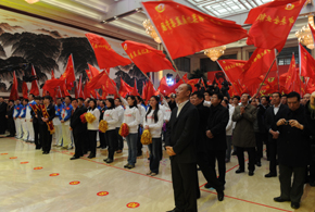 3月4日上午,國務院國資委在京舉行“中央企業郭明義愛心團隊”授旗儀式。國資委主任、黨委書記王勇,中宣部副部長申維辰出席儀式,并與“當代雷鋒”郭明義一起,為“中央企業郭明義愛心團隊”代表授旗。國資委副主任、文明委主任黃丹華向郭明義頒發“中央企業愛心大使”聘書。黃淑和、邵寧、金陽、強衛東、姜志剛、杜淵泉、閆曉峰、郭建新等國資委有關領導以及中宣部宣教局局長荊惠民出席。 |